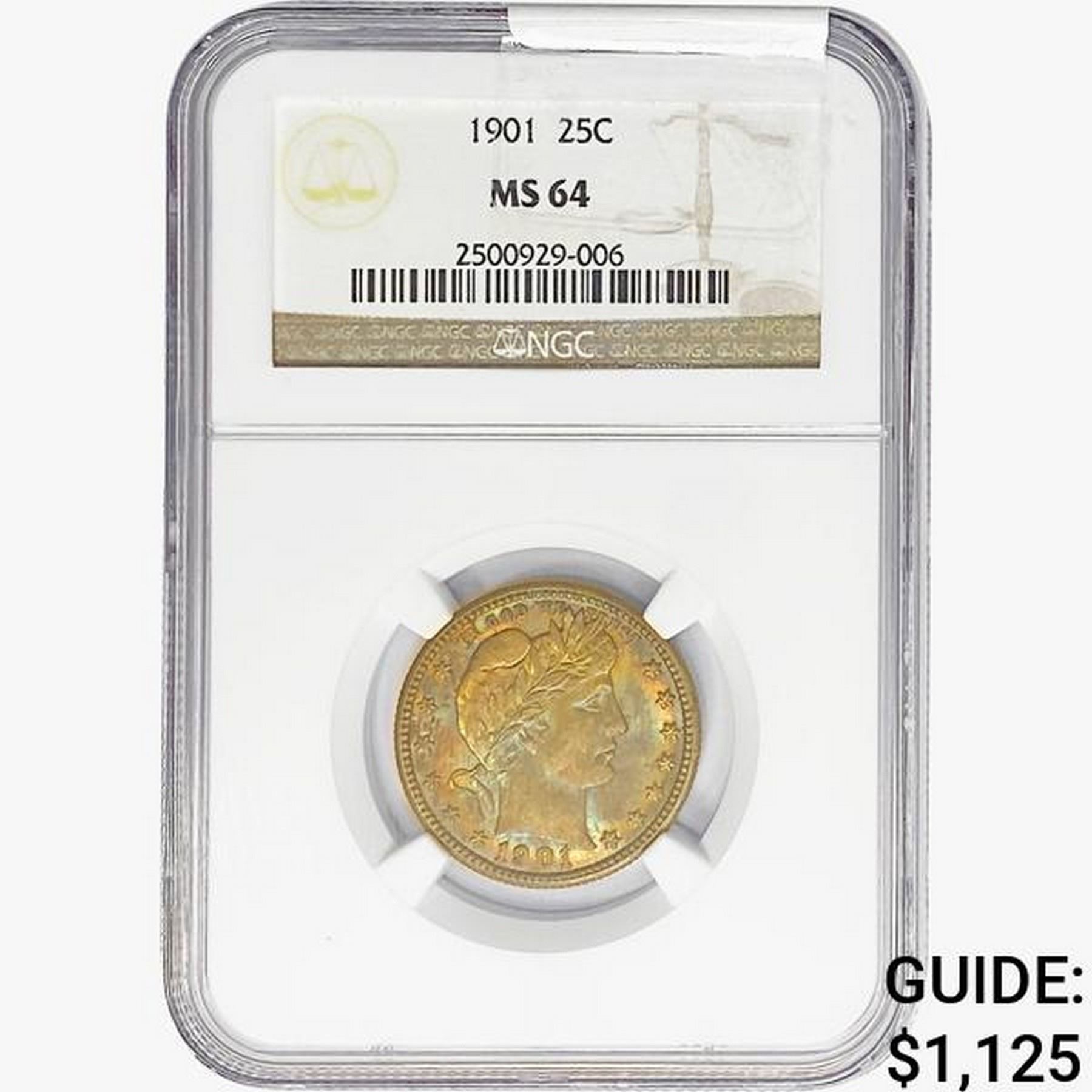 1901 Barber Quarter NGC MS64