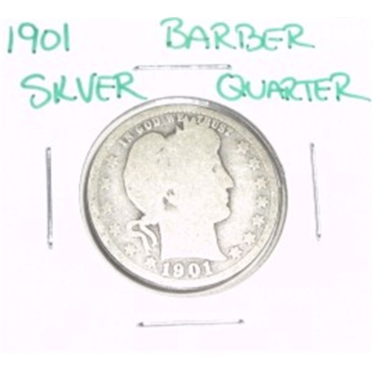 1901 Barber Silver Quarter Dollar *PLEASE LOOK AT PICTURE TO DETERMINE GRADE - COIN OUT OF SAFE DEPOSIT BOX & NOT GRADED*!! ***Coin, Currency & All Items Listed in this auction - Grades, Conditions and Values are not Safe Deposit Coins LLC Responsibilty. Grades, Condition and Values are determined by Consigner(s) & Buyers ONLY***
