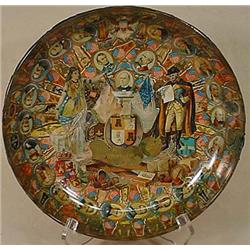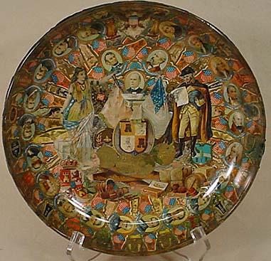1901 CIGAR BAND TIP TRAY OR CIGAR ASHTRAY - Cigar band labels attached to the underside of the glass showing every president from George Washington through Theodore Roosevelt. Also has the American Bald Eagle and the Presidential Seal attached.