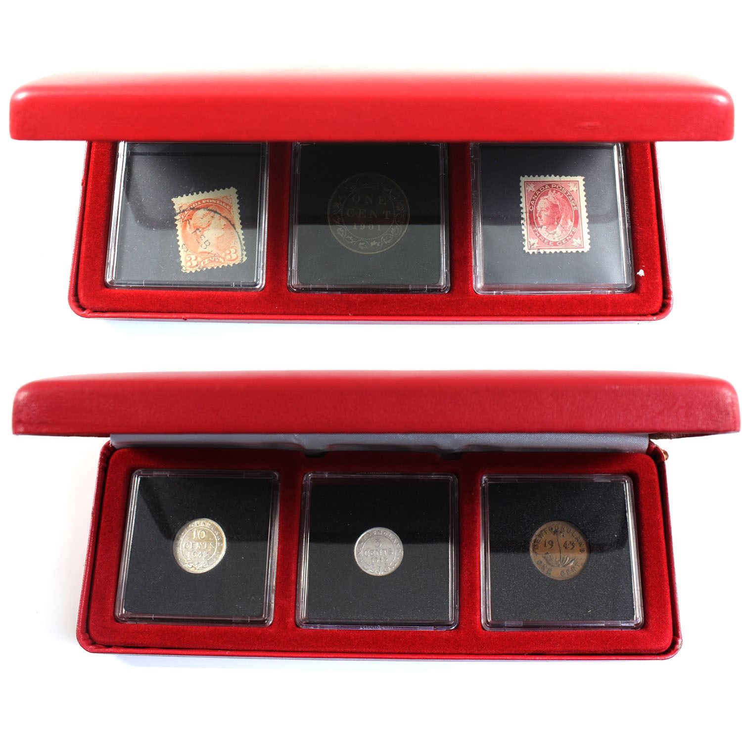 1901 Canada 1-cent with a pair of 3-cent Stamps & 1943 Newfoundland 1-cent, 5-cent & 10-cent set.