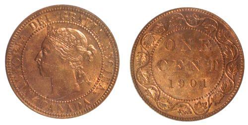 0007 - 1901 Canada LargeCent - ICCS MS63Red