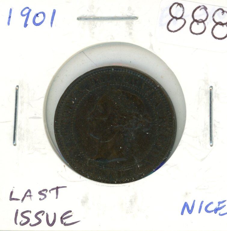 1901 Canadian Victorian Large Cent. Last Large Cent minted for Queen Victoria. EF-40. Nice.
