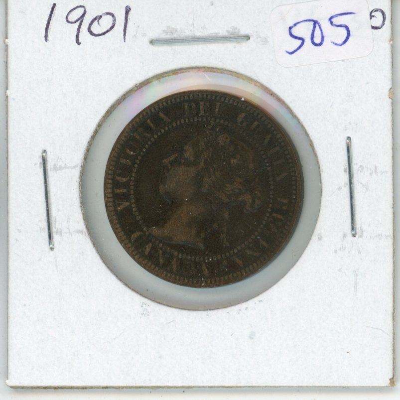 1901 Canadian Victorian Large Cent. Last large cent issued for Queen Victoria. VF-30.