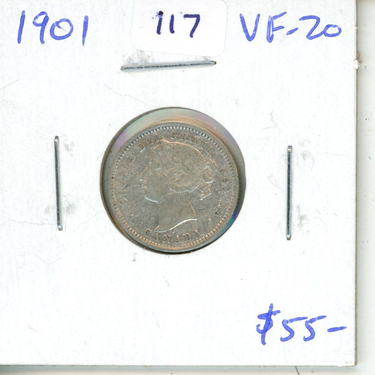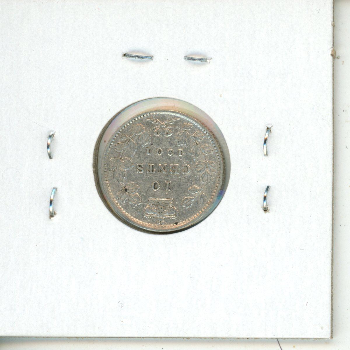 1901 Canadian Victorian Silver 10 Cents. The last issue of Queen Victoria. VF-20.