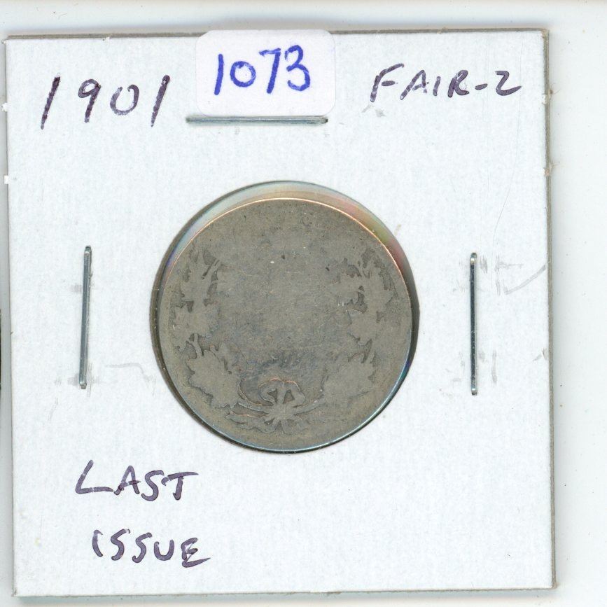 1901 Canadian Victorian Silver 25 Cents. Last issue of Queen Victoria. Fair-2.