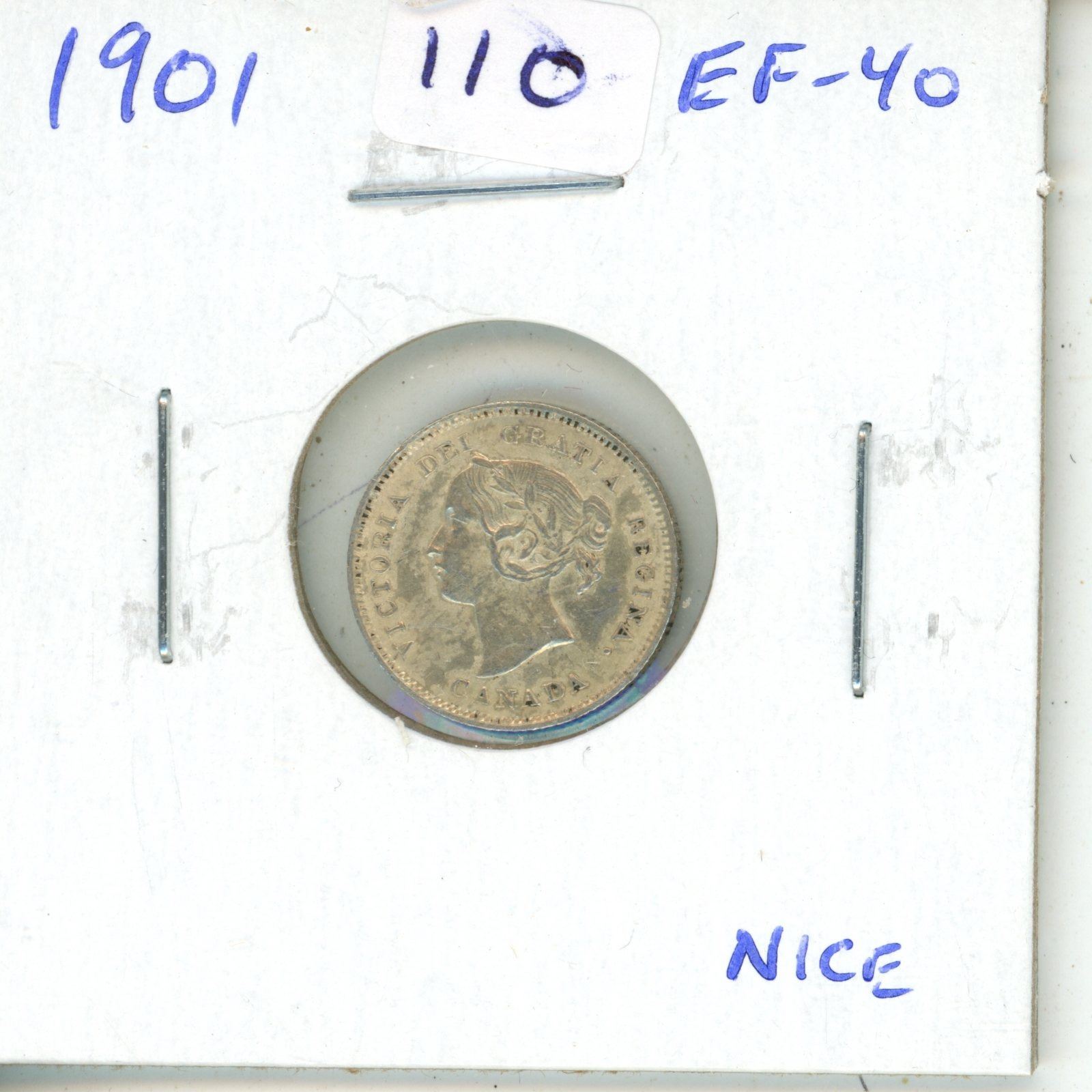 1901 Canadian Victorian Silver 5 Cents. The last issue of Queen Victoria. EF-40.