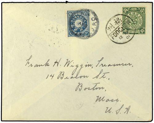1901 Envelope to BOSTON, USA, franked 10c. ´dragon´ tied by FOOCHOW date stamp. On obverse also, Ja