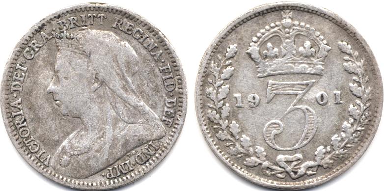 1901 GREAT BRITIAN SILVER 3 PENCE-CIRC