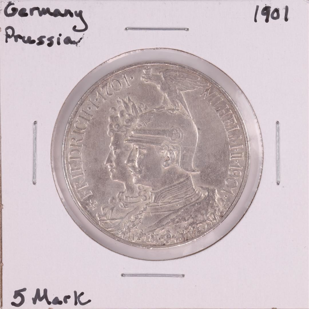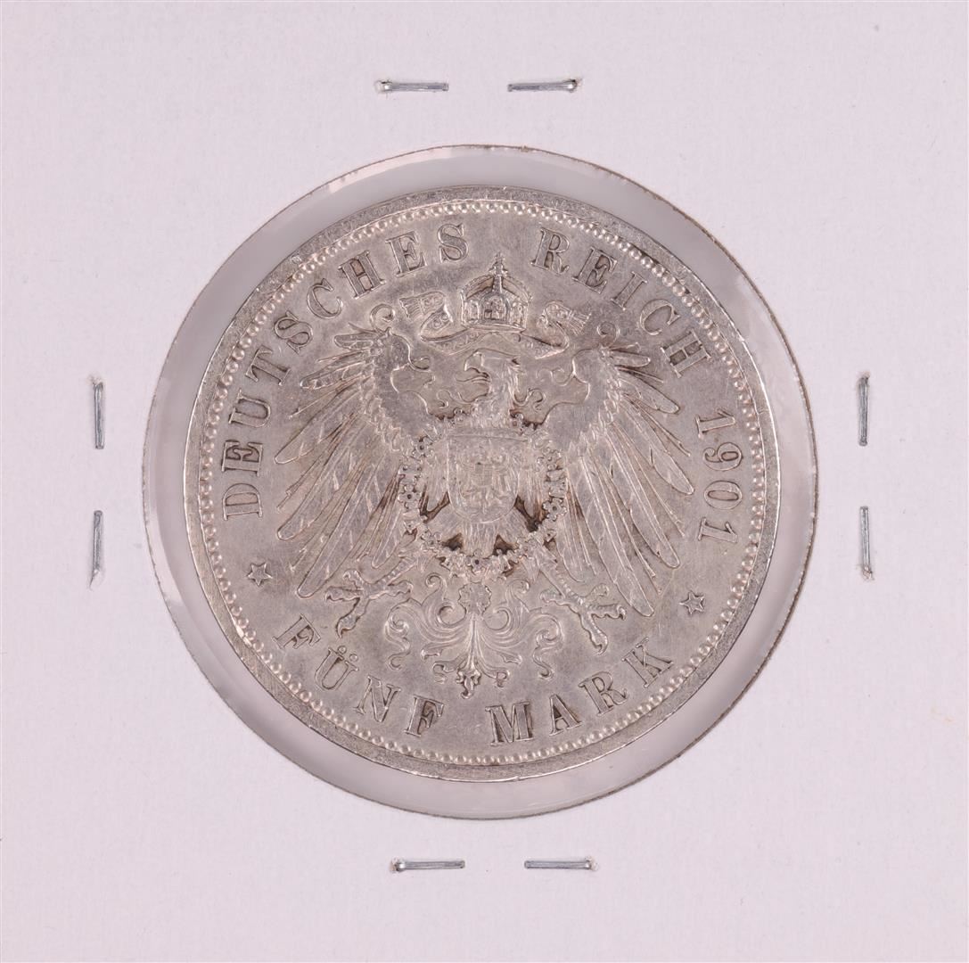 One 1901 Germany Prussia 5 Mark Silver Coin.