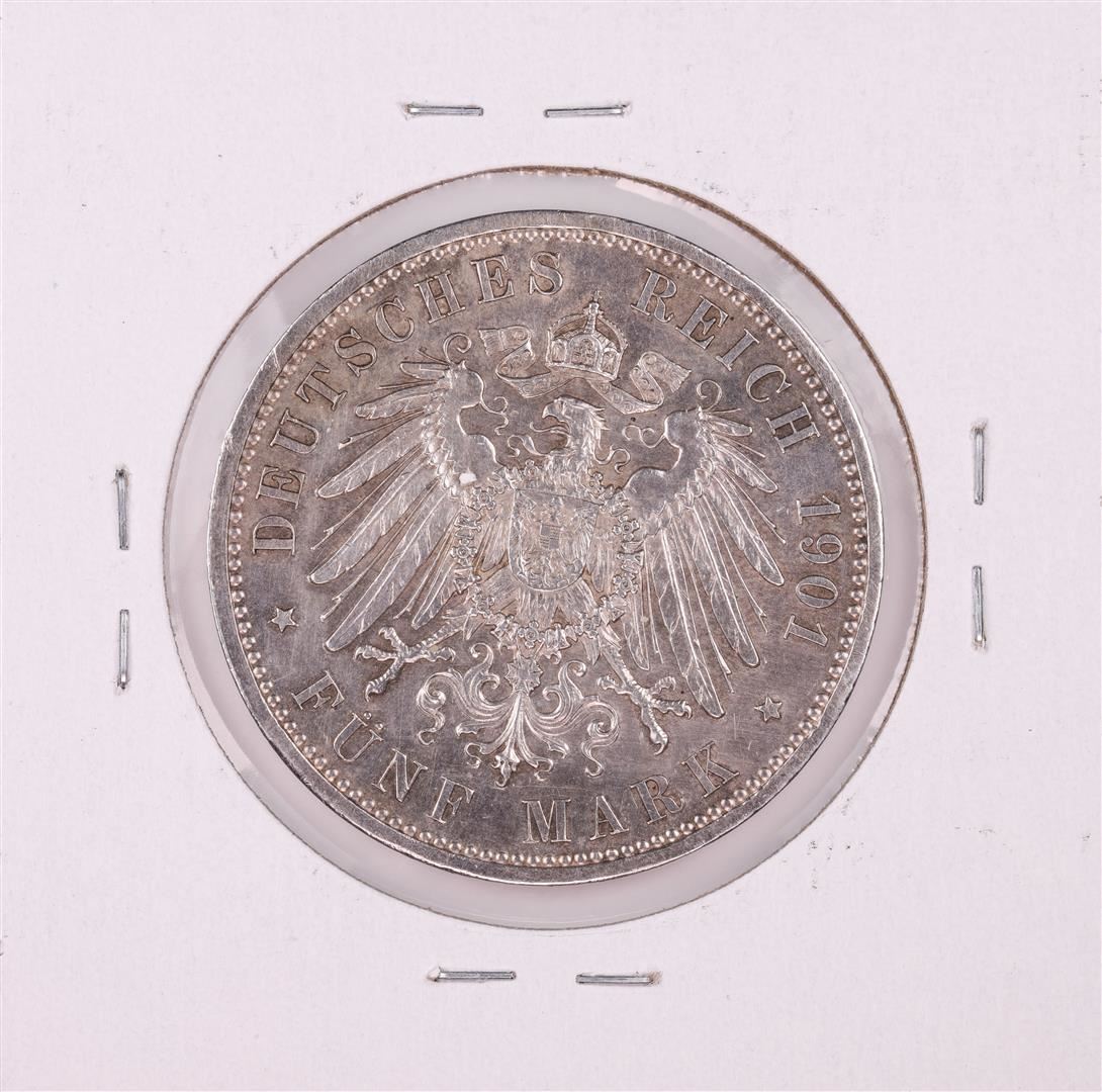 One 1901 Germany Prussia 5 Mark Silver Coin.