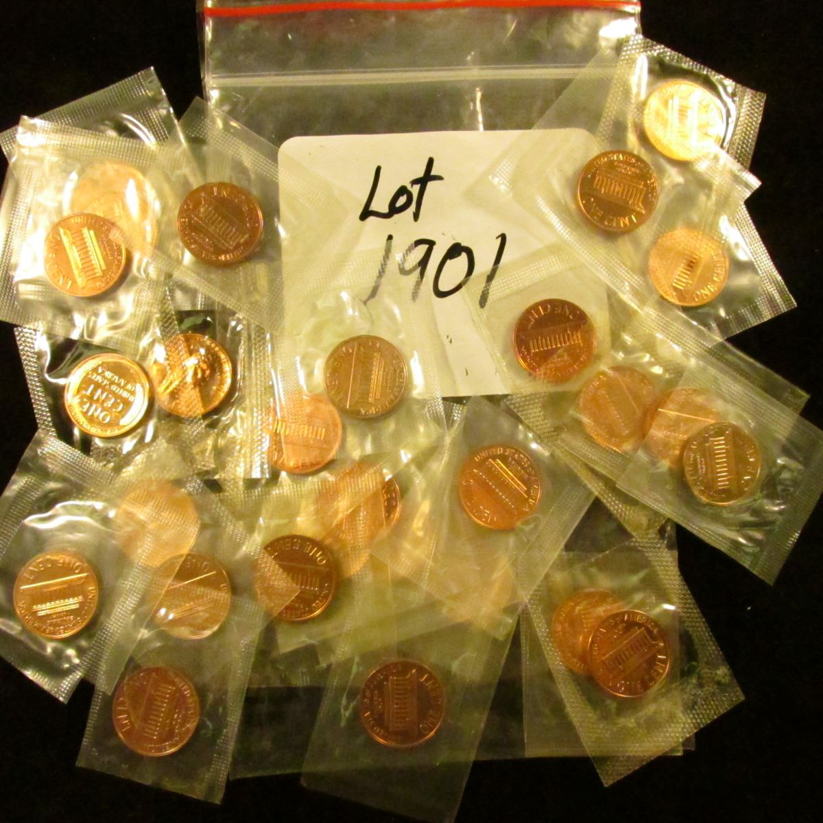 Group of (30) Late 1950s to early 1960s Proof Lincoln Cents in original flat pack cellophane cut from Proof Sets.