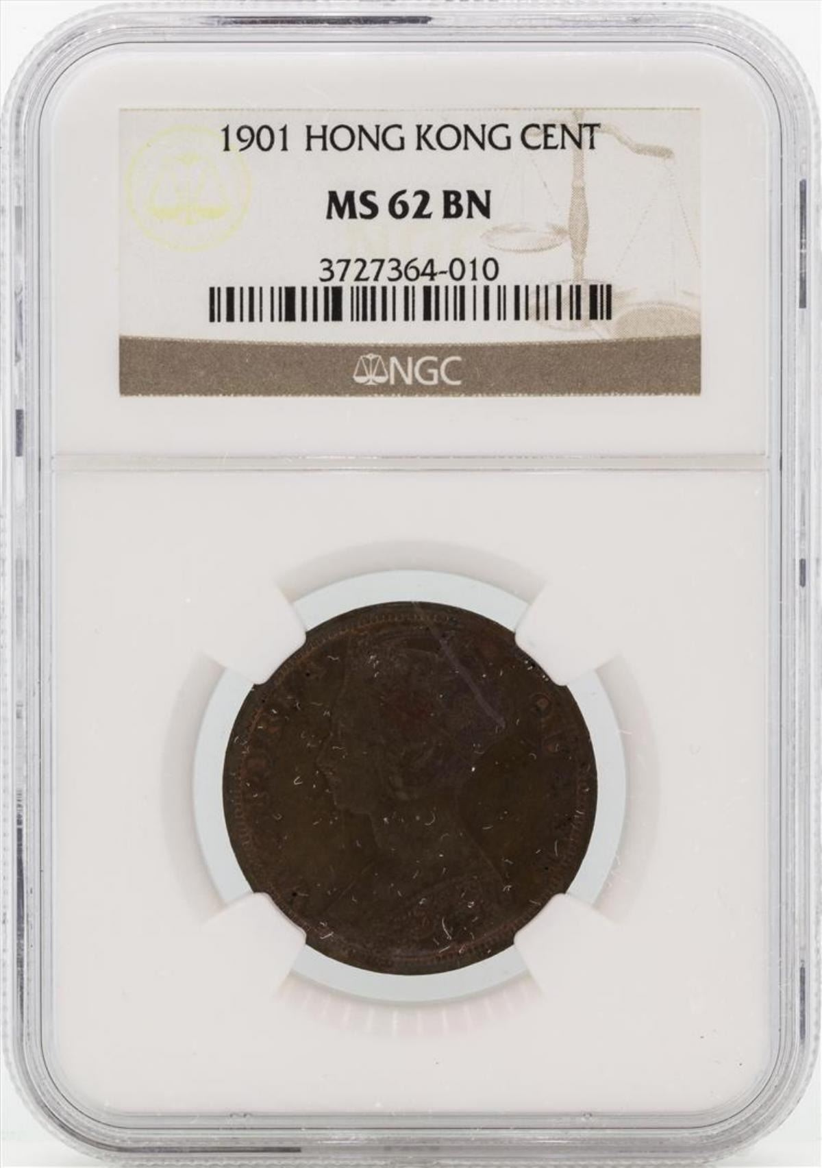 One 1901 Hong Kong Cent Coin NGC MS62BN. NGC Certified.