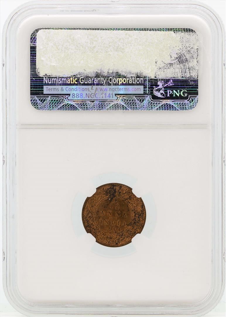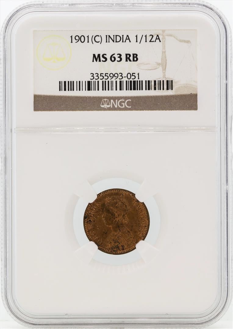 One 1901 India 1/12 Annas Coin NGC MS63RB. NGC Certified.