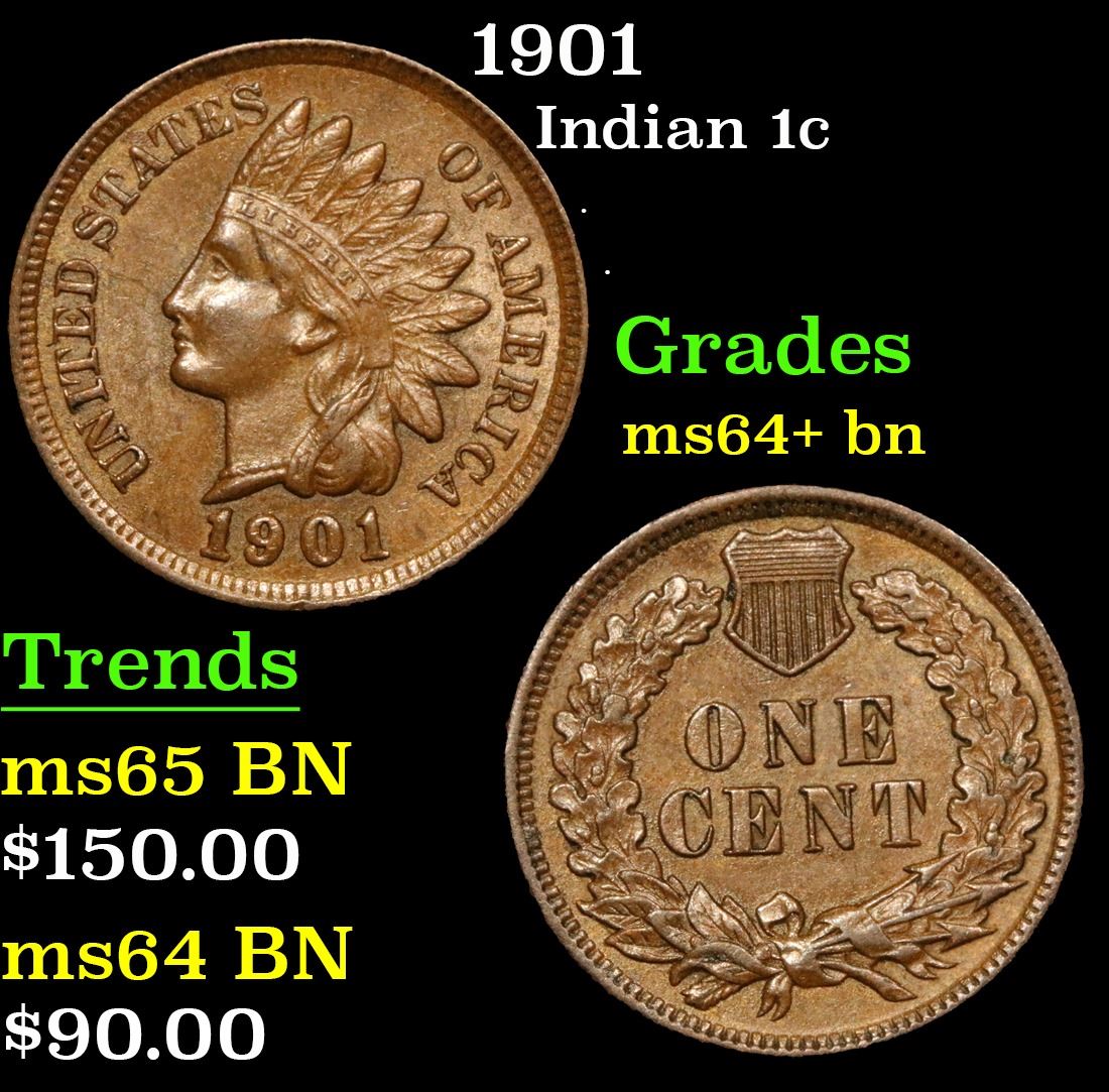 1901 . . Indian Cent 1c Grades Choice+ Unc BN.