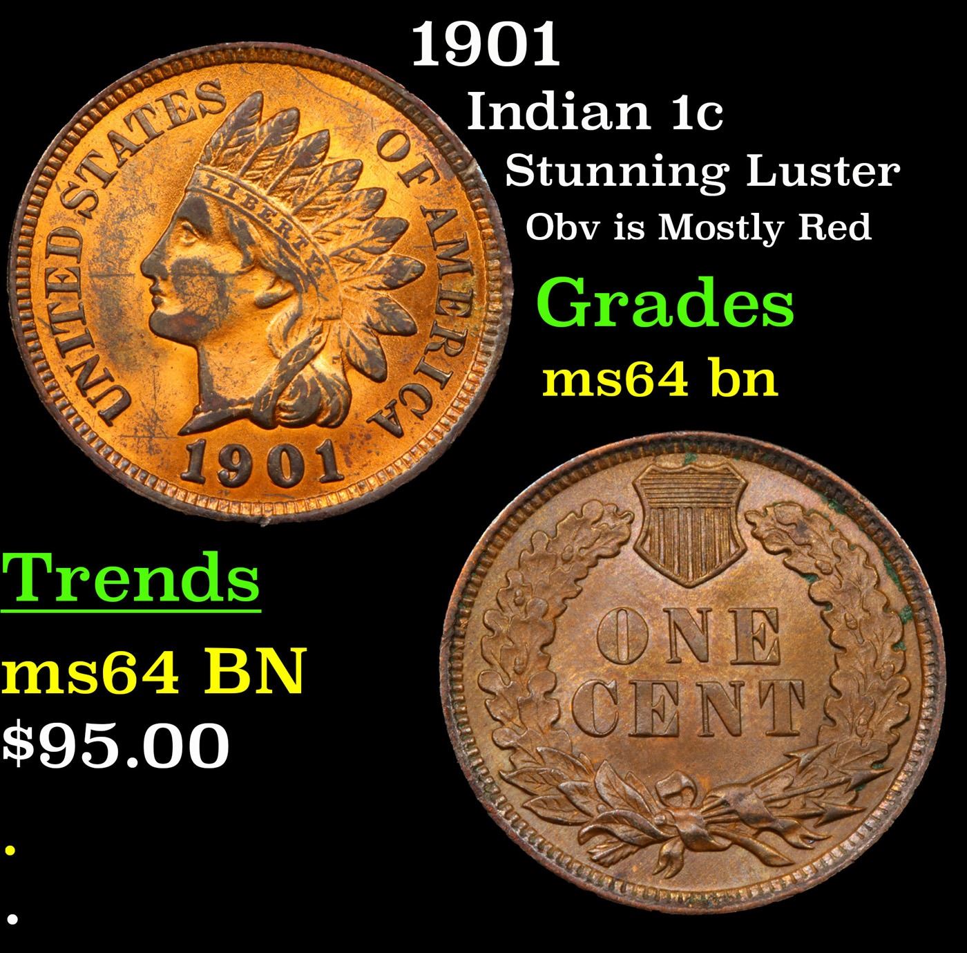 1901 Indian Cent 1c Grades Choice Unc BN.