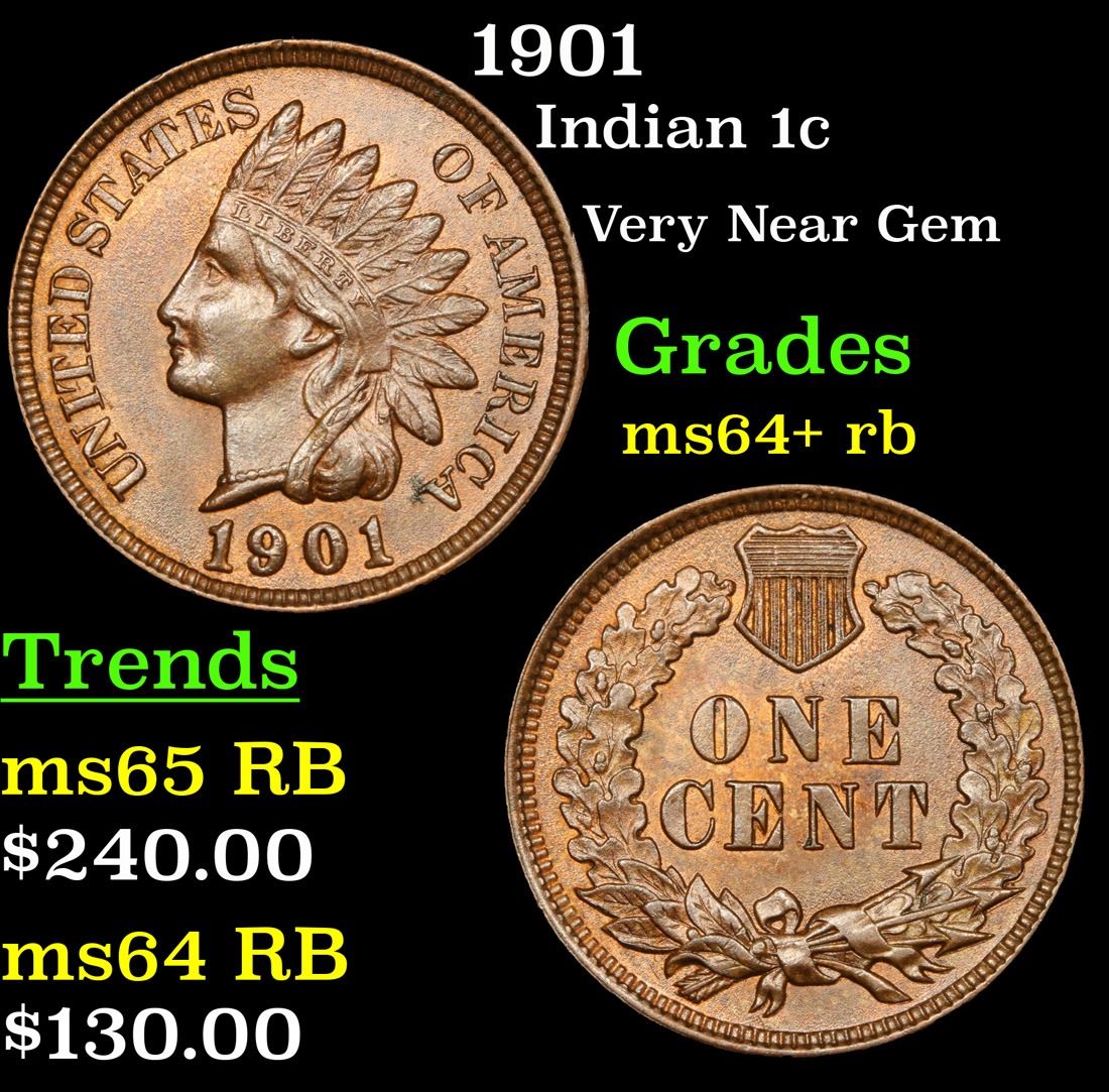 1901 . Very Near Gem Indian Cent 1c Grades Choice+ Unc RB.
