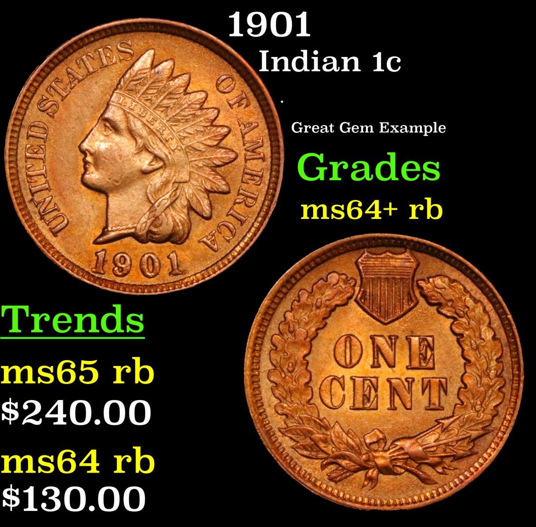 1901 . Very Near Gem Indian Cent 1c Grades Choice+ Unc RB. A Corey's Pick, Bid to Win, Don't let it get Away Coin