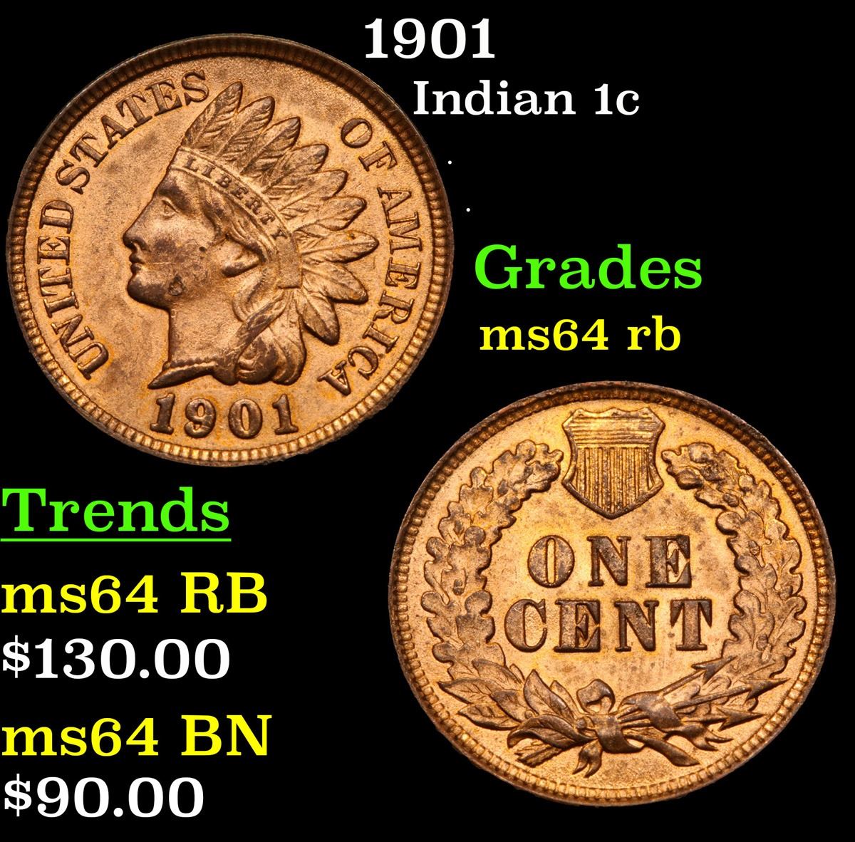 1901 Indian Cent 1c Grades Choice Unc RB.