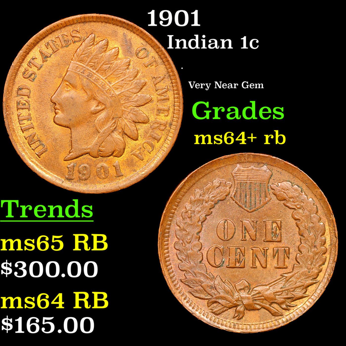 1901 Indian Cent 1c Grades Choice+ Unc RB.