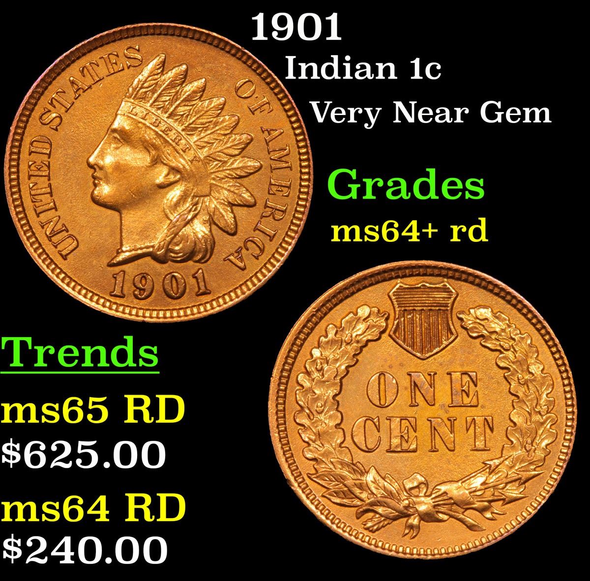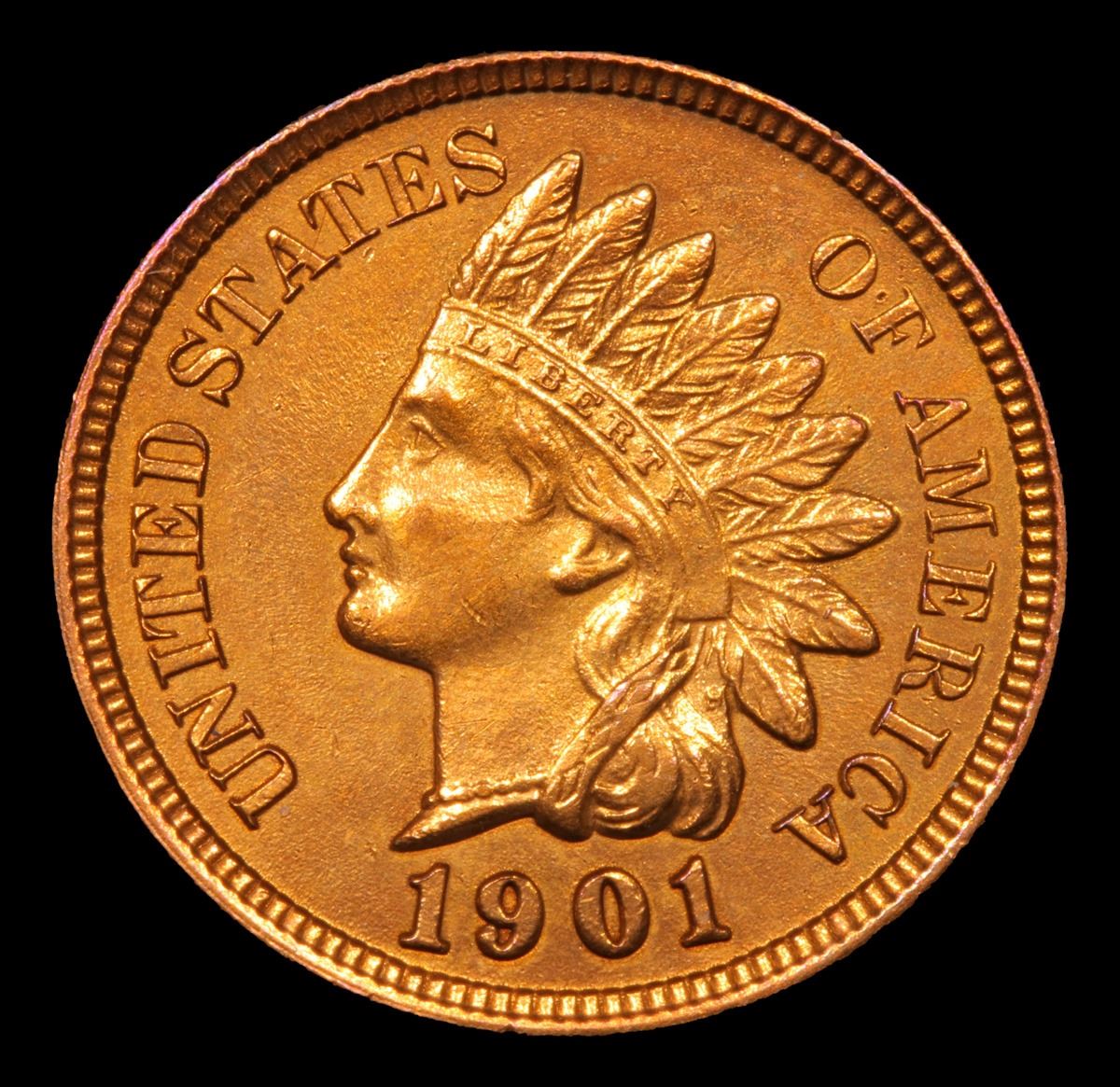 1901 Indian Cent 1c Grades Choice+ Unc RD.