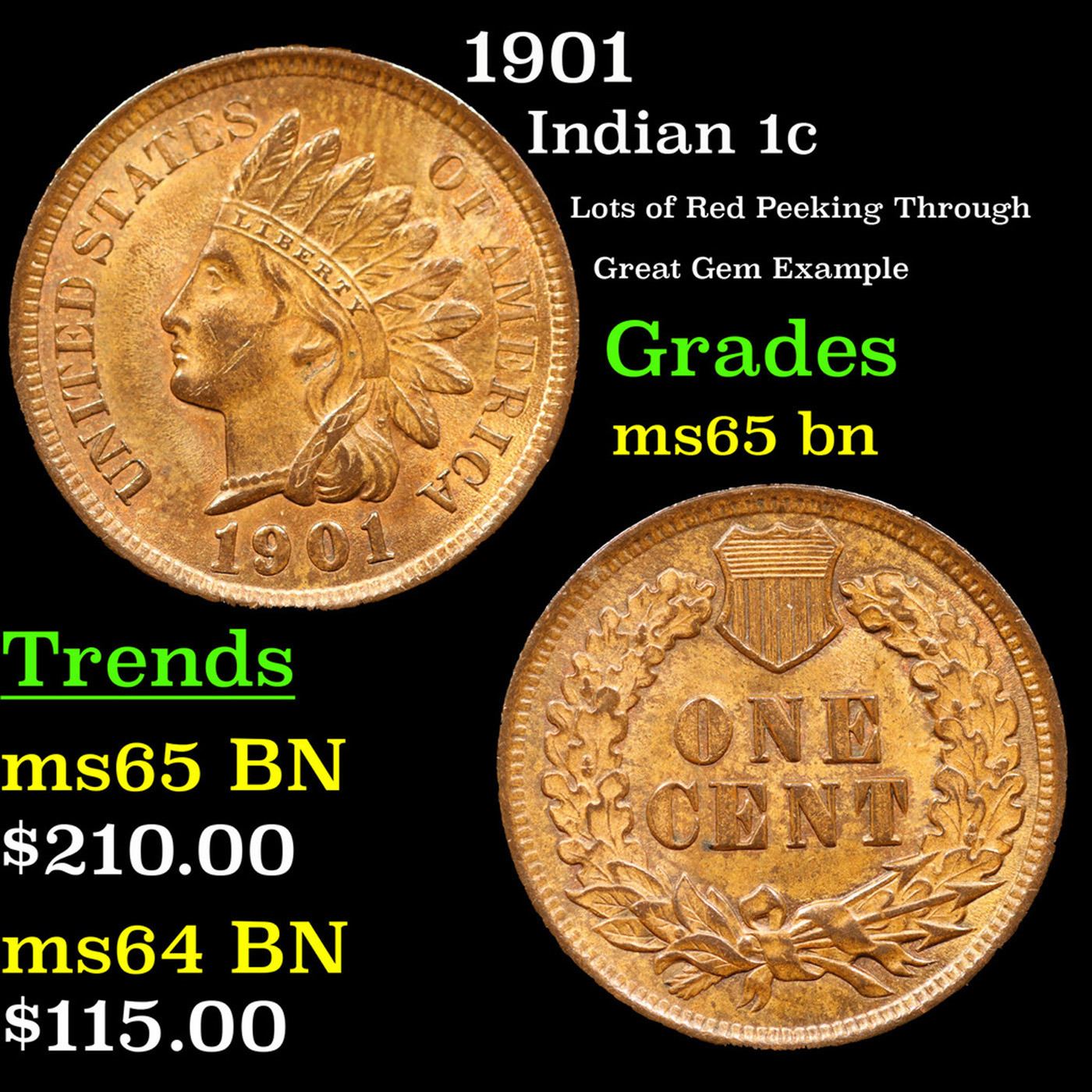 1901 Indian Cent 1c Grades GEM Unc BN.