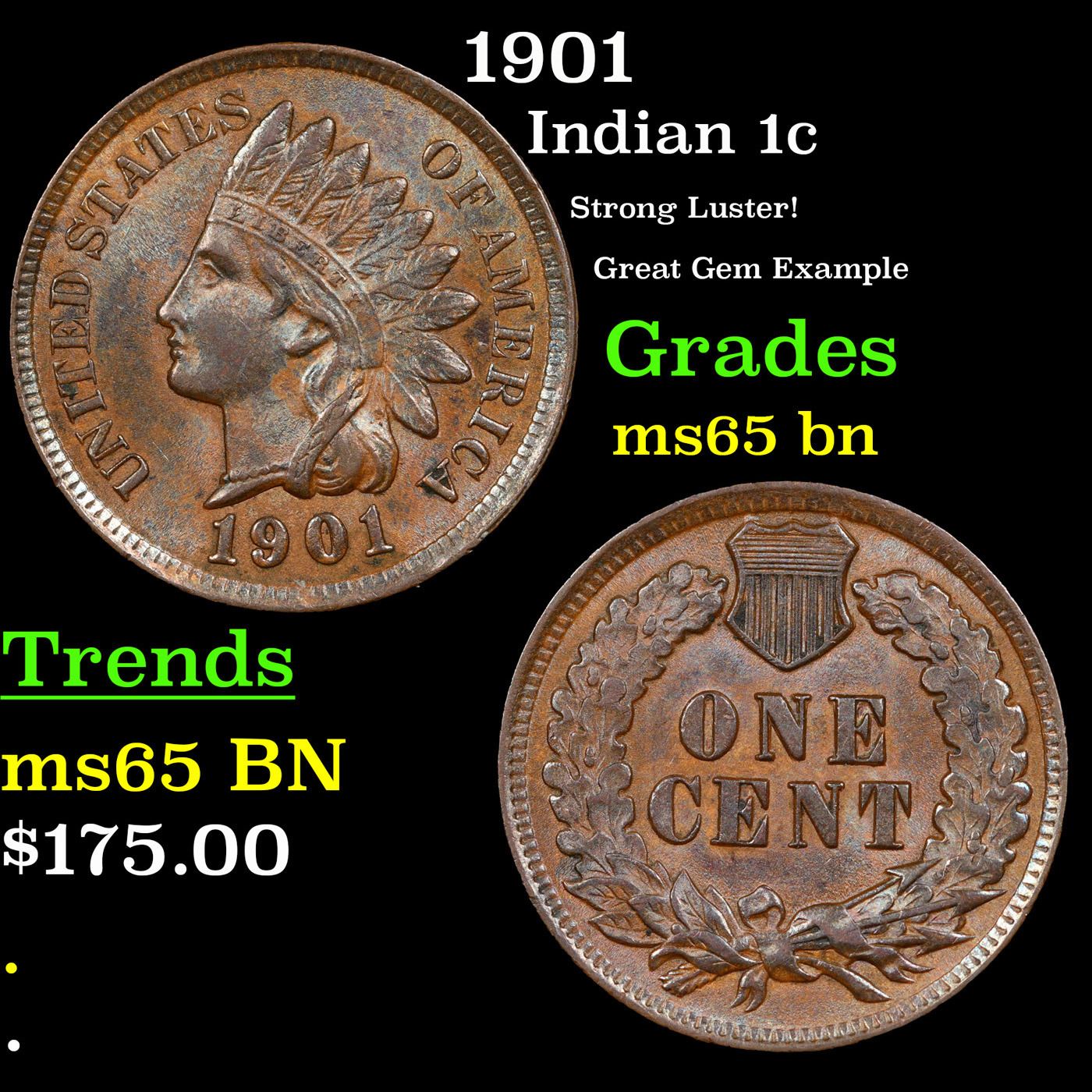1901 Indian Cent 1c Grades GEM Unc BN.
