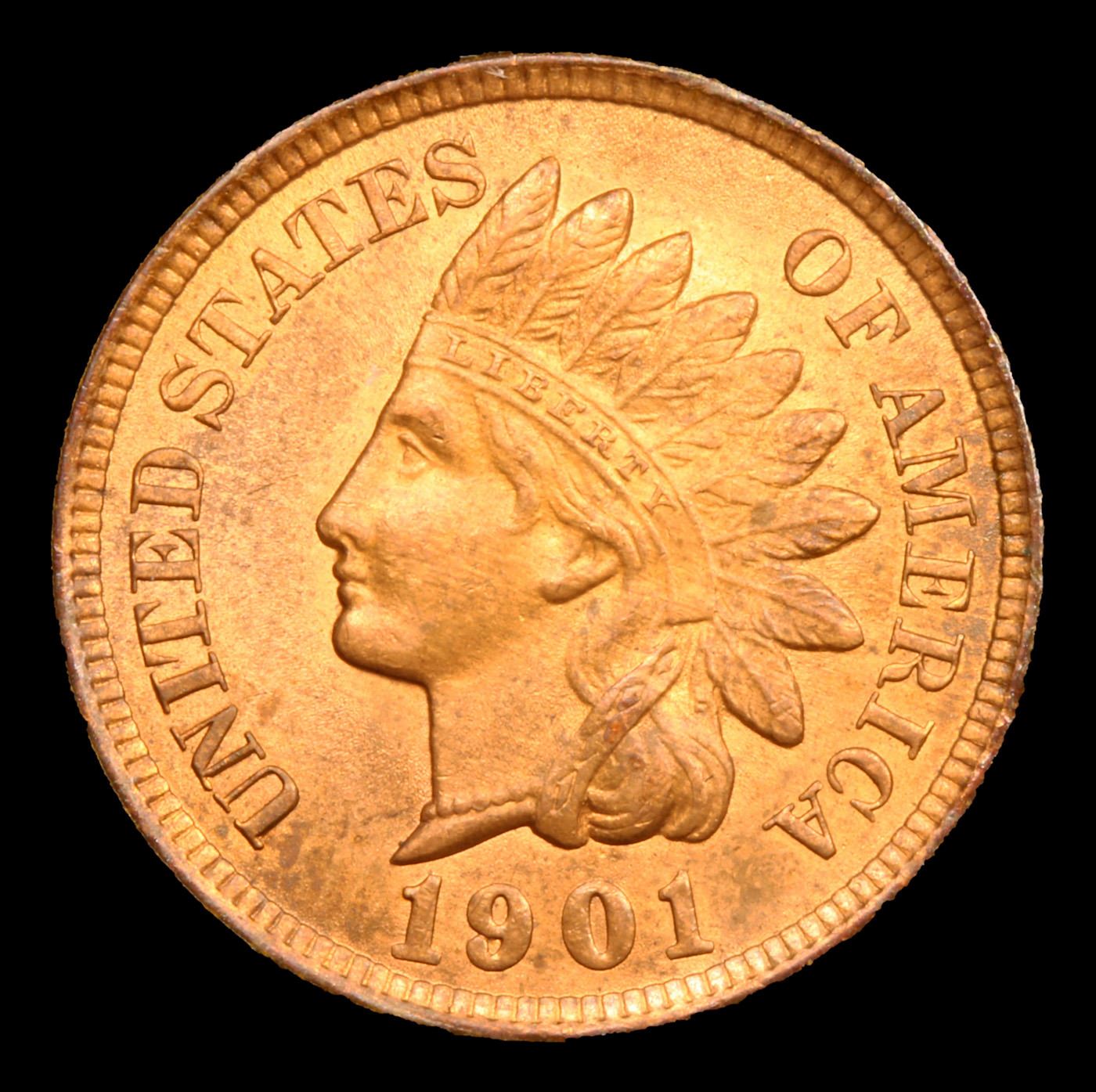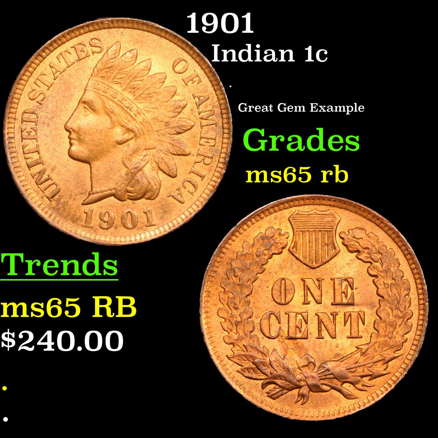 1901 Indian Cent 1c Grades GEM Unc RB.