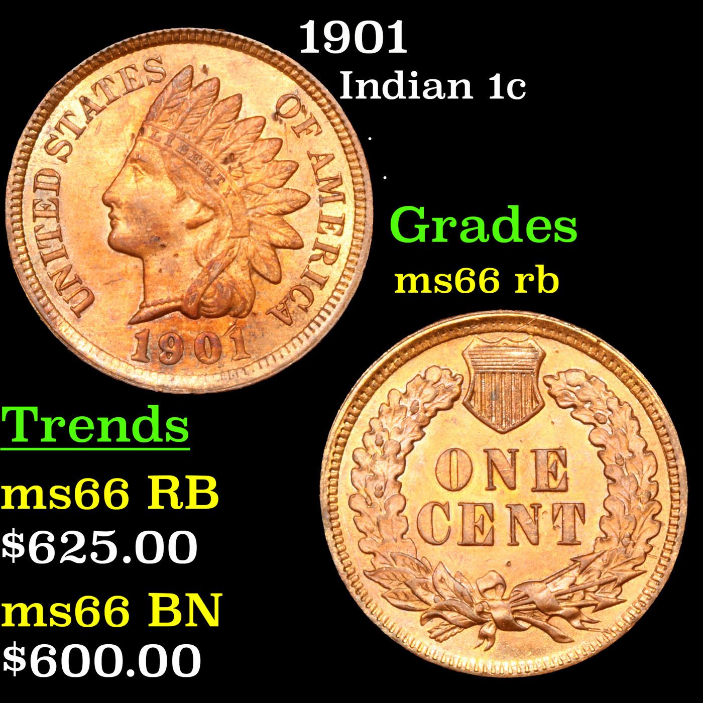 1901 Indian Cent 1c Grades GEM+ Unc RB.