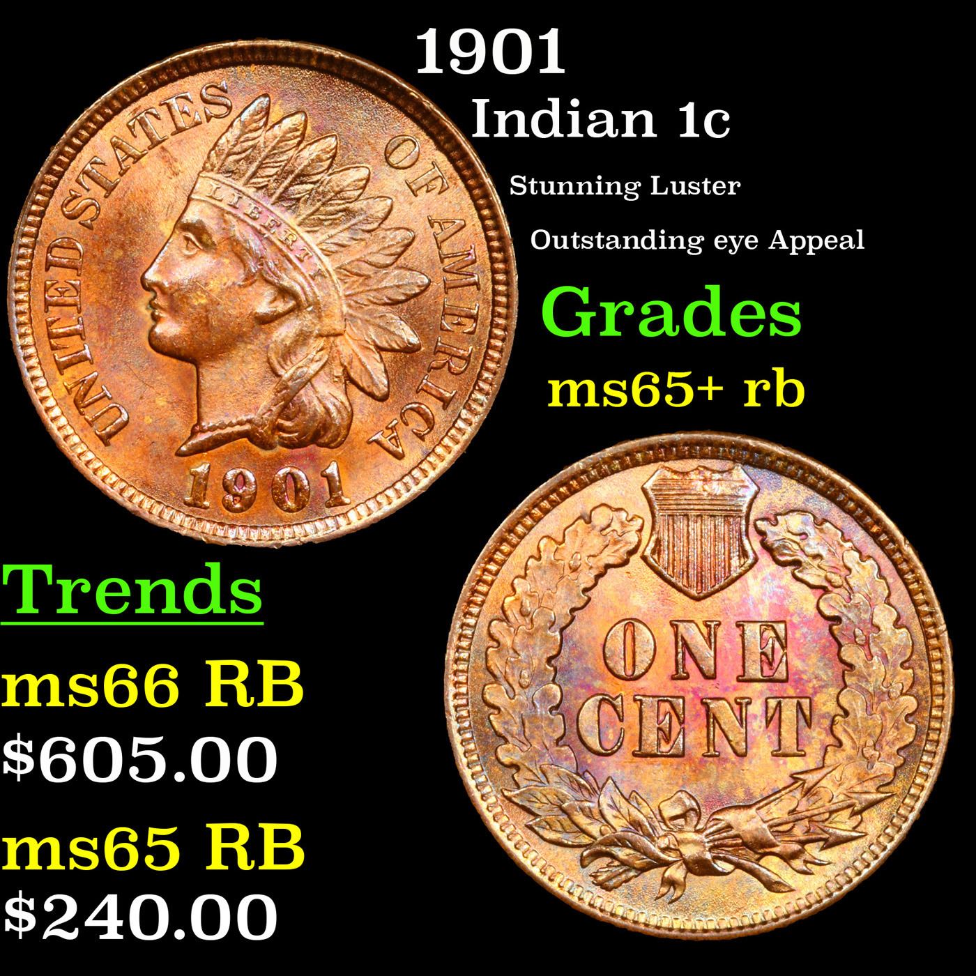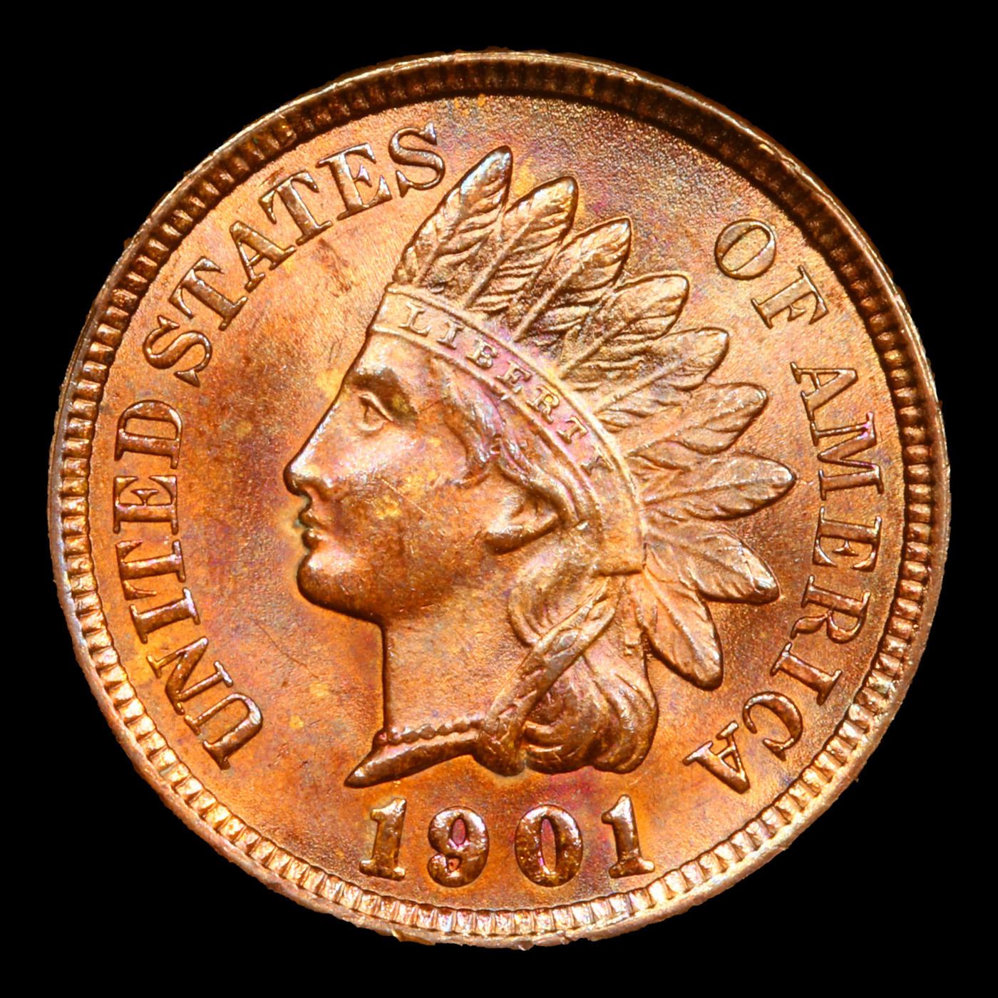 1901 Indian Cent 1c Grades Gem+ Unc RB.