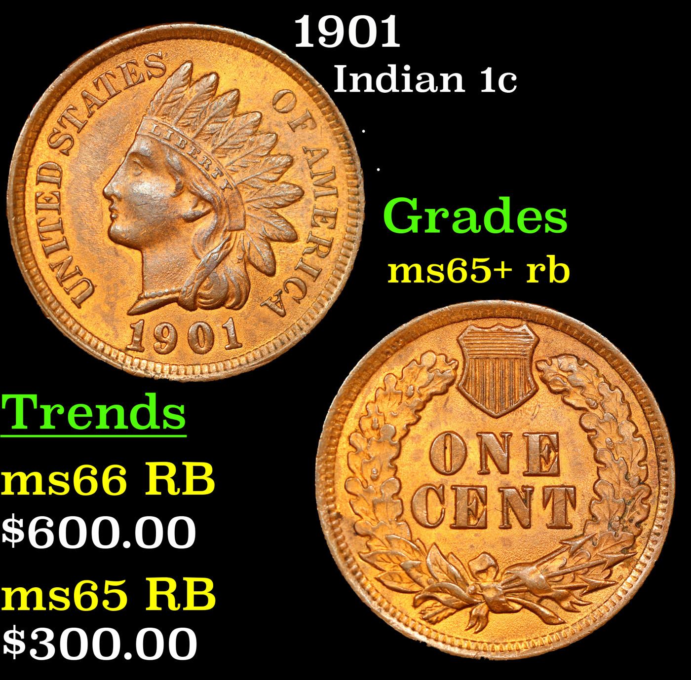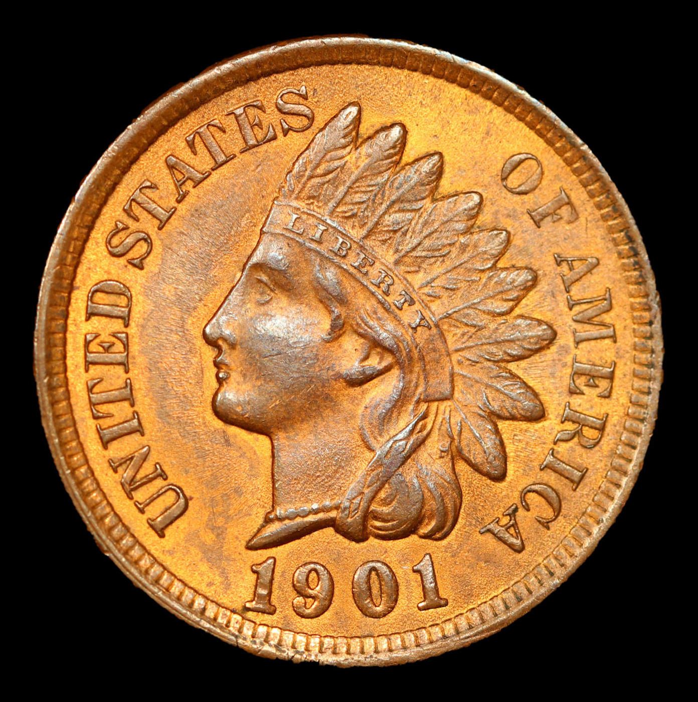 1901 Indian Cent 1c Grades Gem+ Unc RB.