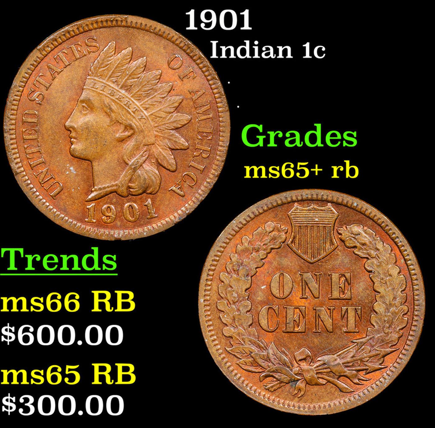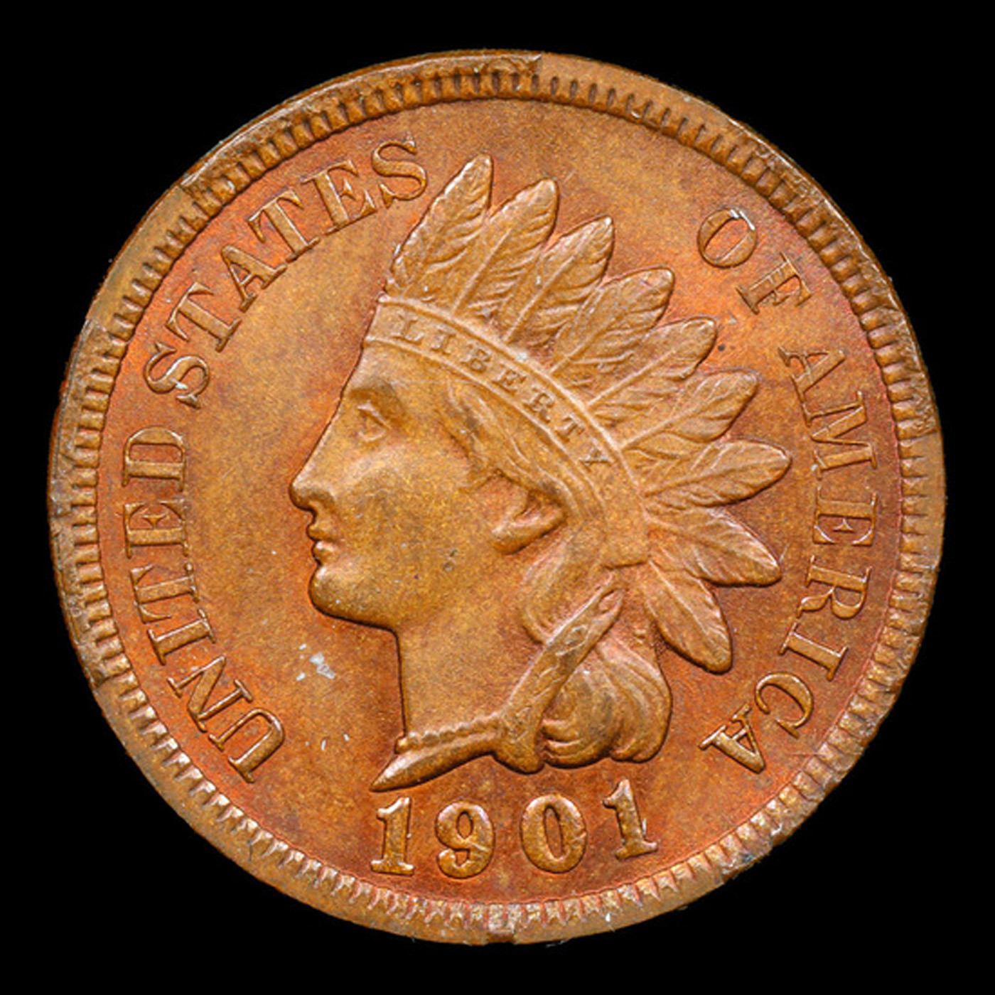 1901 Indian Cent 1c Grades Gem+ Unc RB.