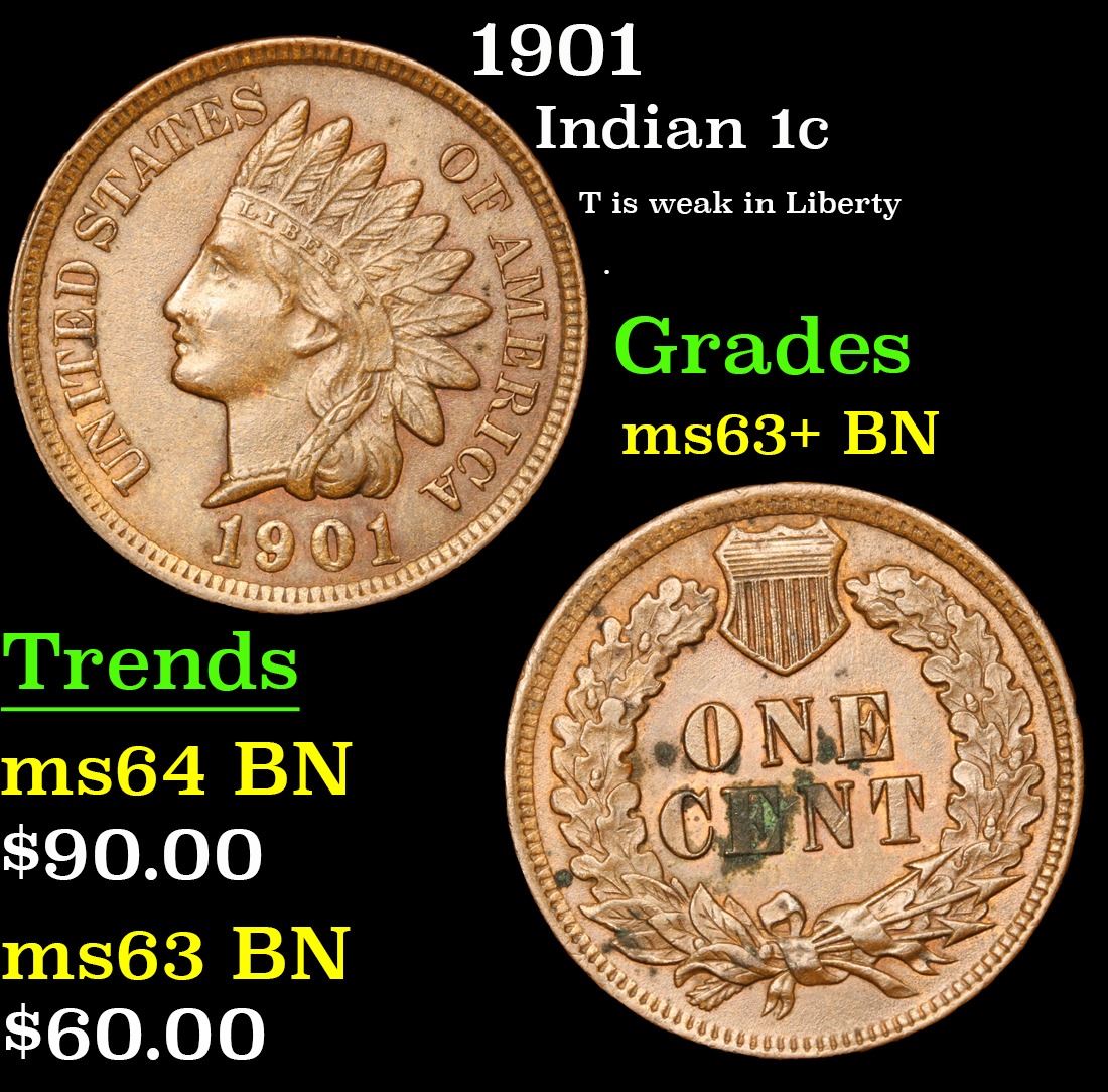 1901 T is weak in Liberty . Indian Cent 1c Grades Select+ Unc BN.