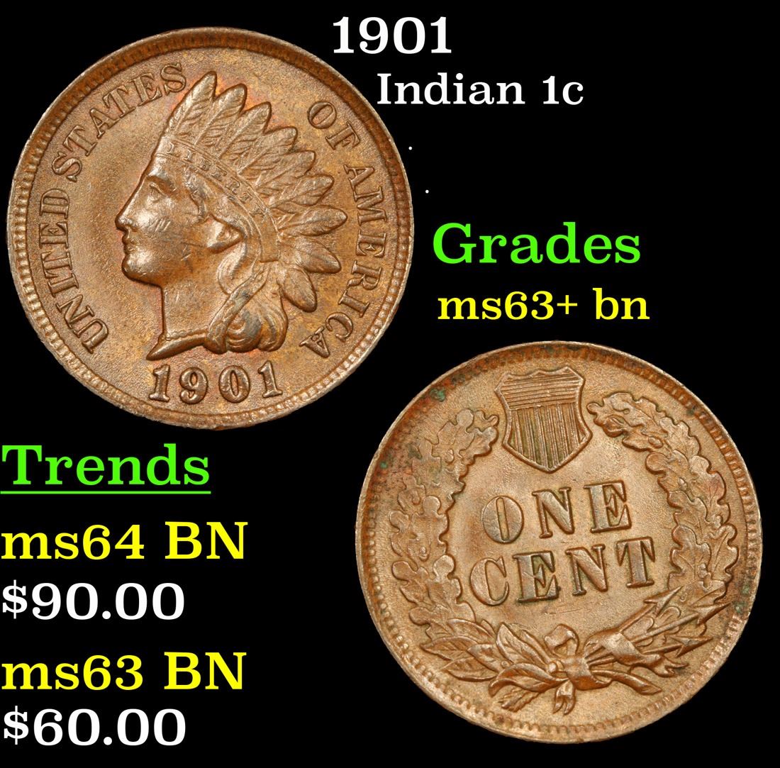 1901 . . Indian Cent 1c Grades Select+ Unc BN.