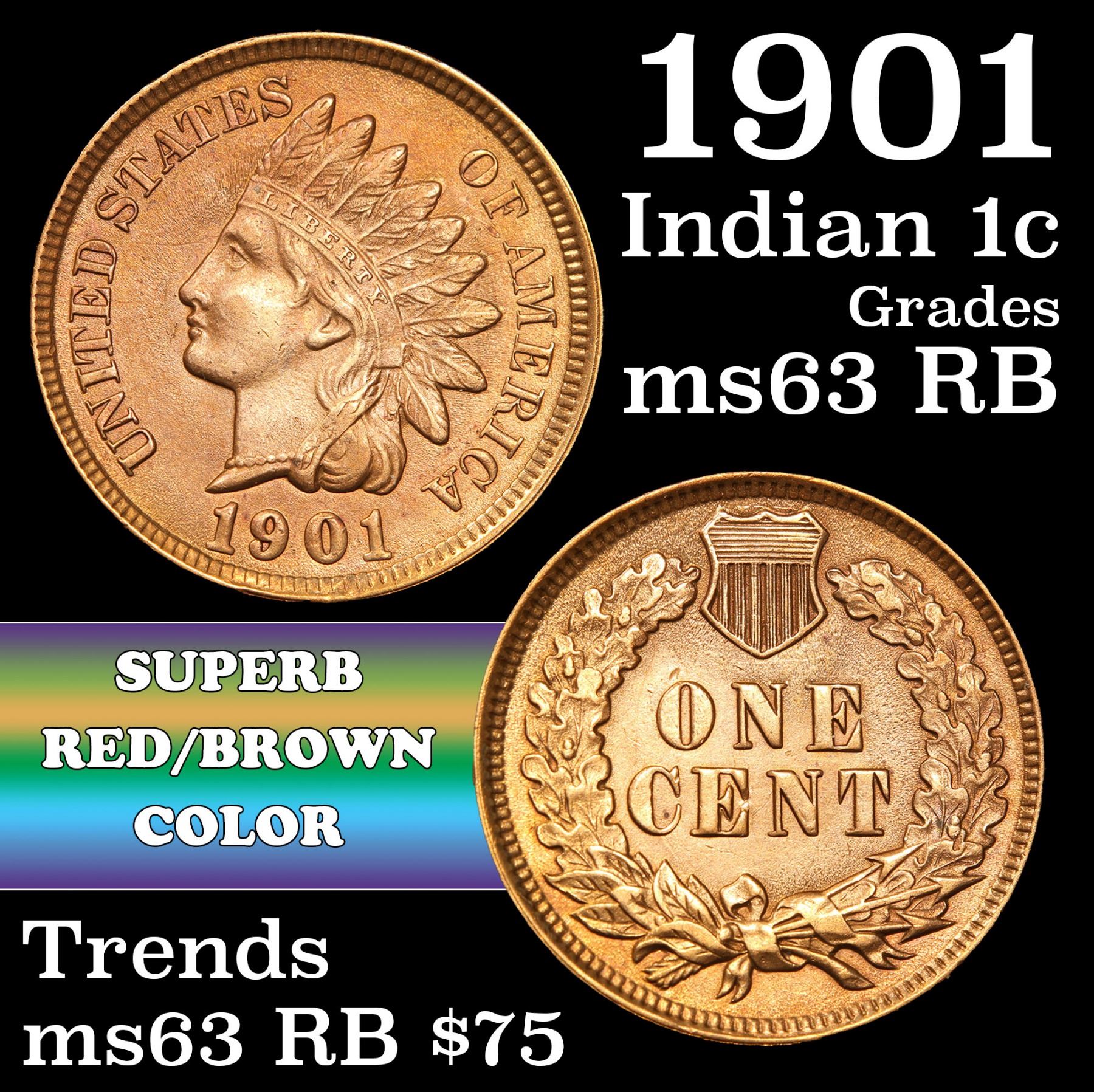 1901 Indian Cent 1c Grades Select Unc RB.