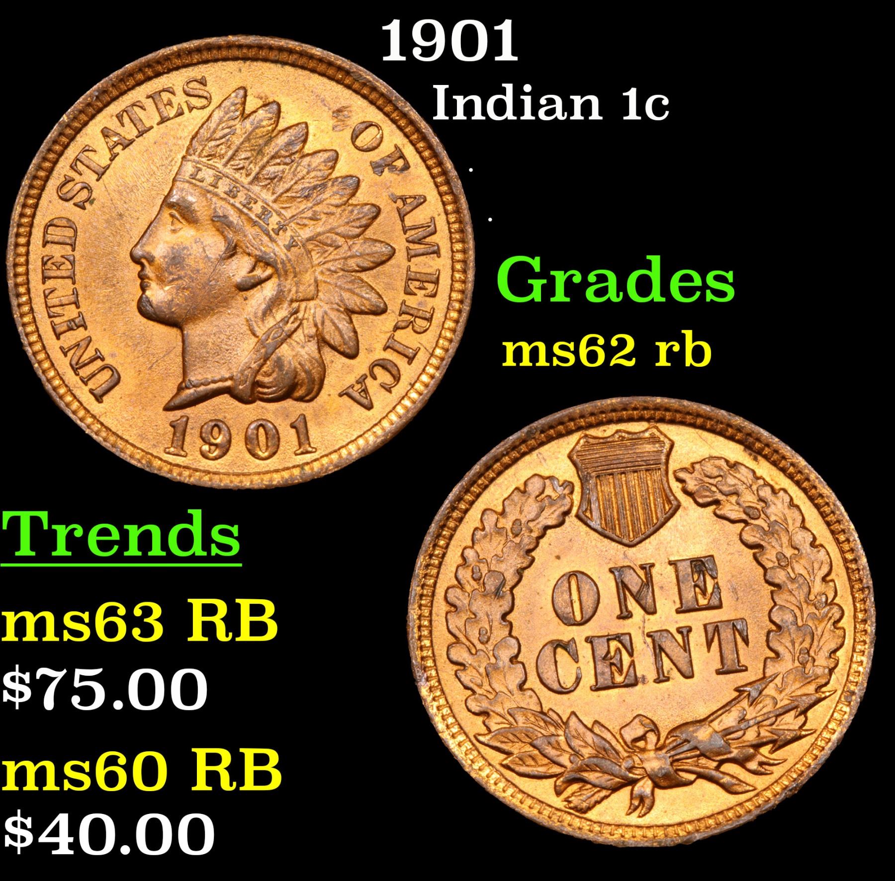 1901 . . Indian Cent 1c Grades Select Unc RB.
