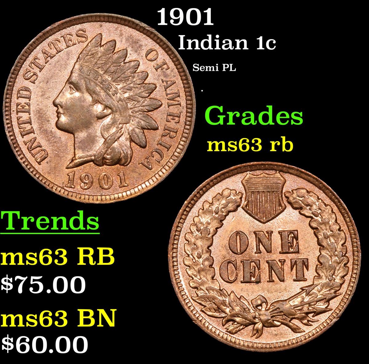 1901 Semi PL . Indian Cent 1c Grades Select Unc RB.