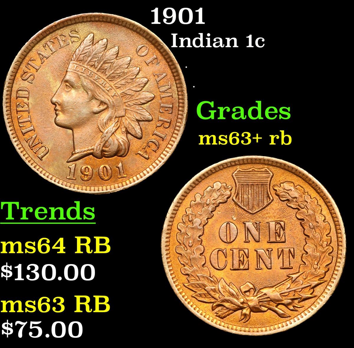 1901 Indian Cent 1c Grades Select+ Unc RB.