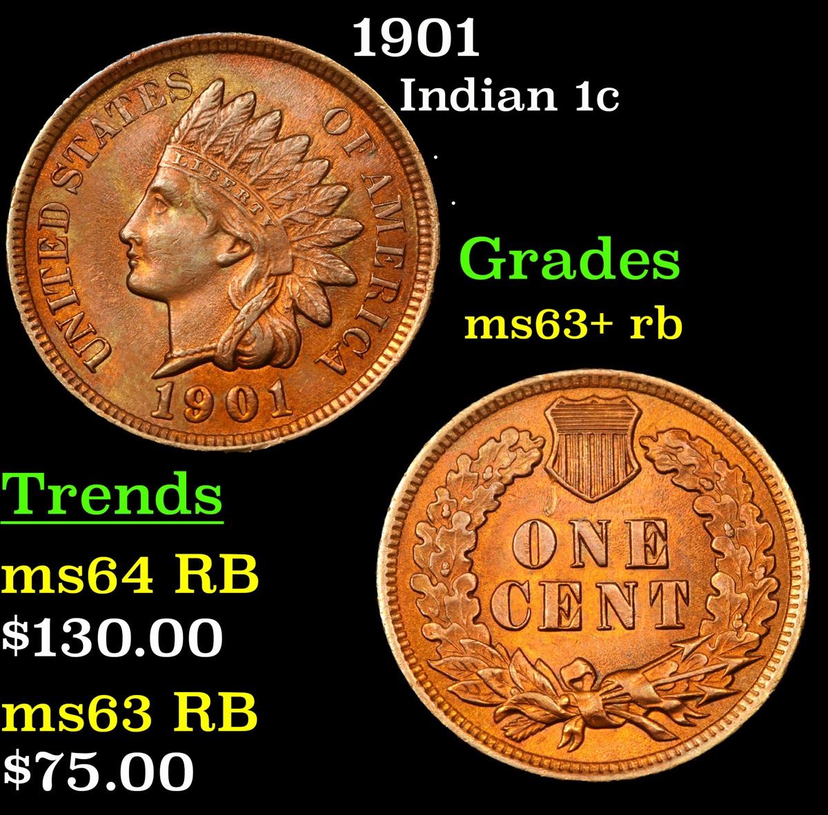 1901 Indian Cent 1c Grades Select+ Unc RB.