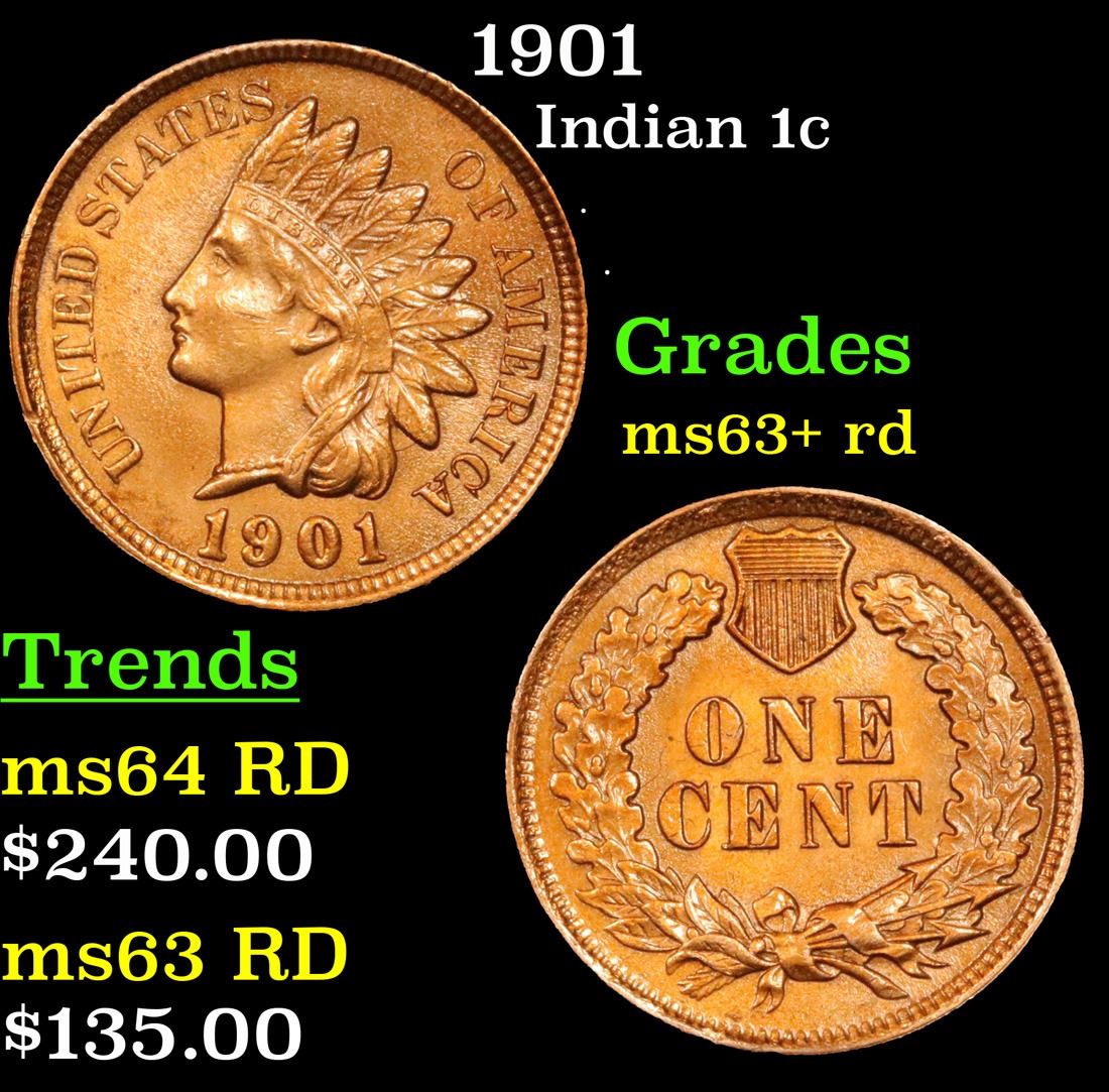 1901 . . Indian Cent 1c Grades Select+ Unc RD.