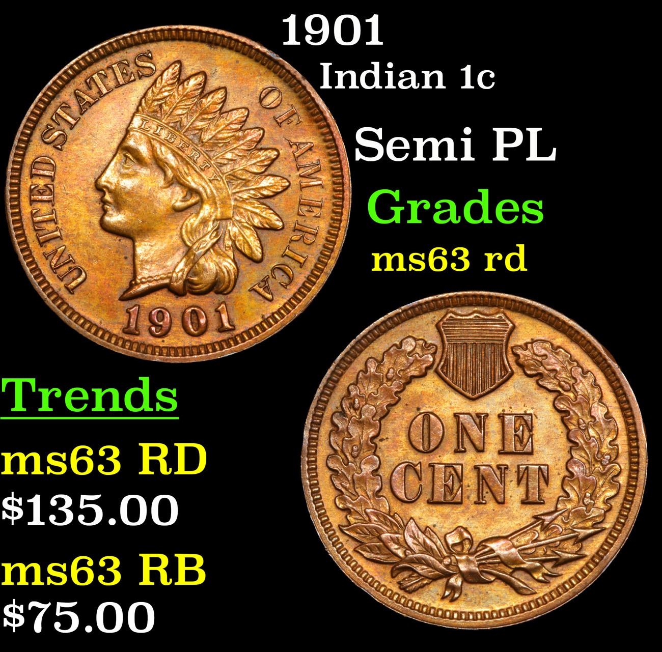 1901 Semi PL . Indian Cent 1c Grades Select Unc RD.