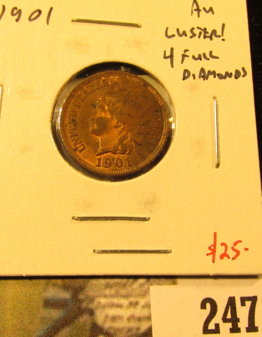 1901 Indian Cent, AU luster! 4 full diamonds, value $25