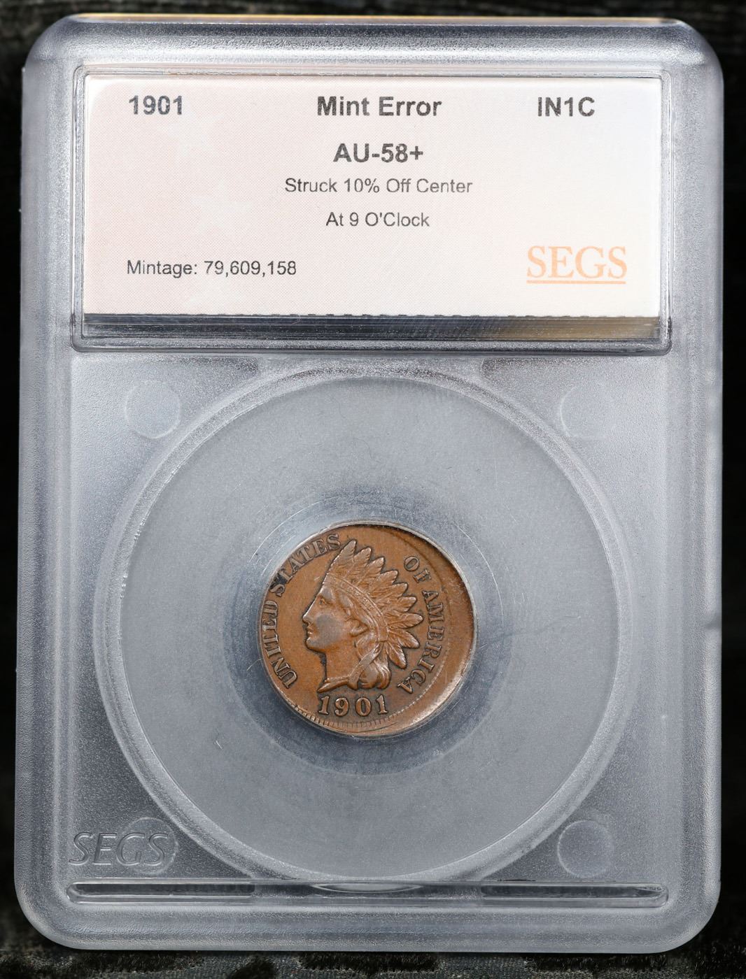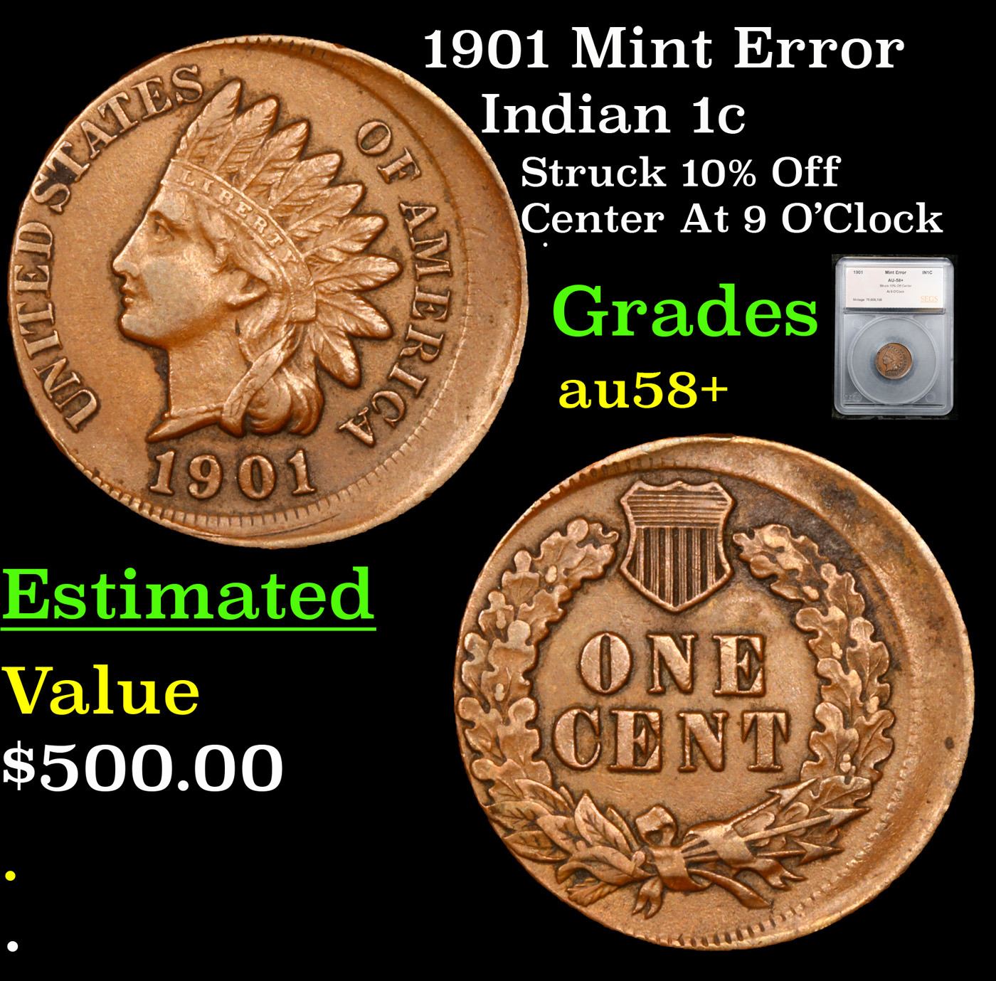 1901 Mint Error Indian Cent 1c Graded au58+ BY SEGS.