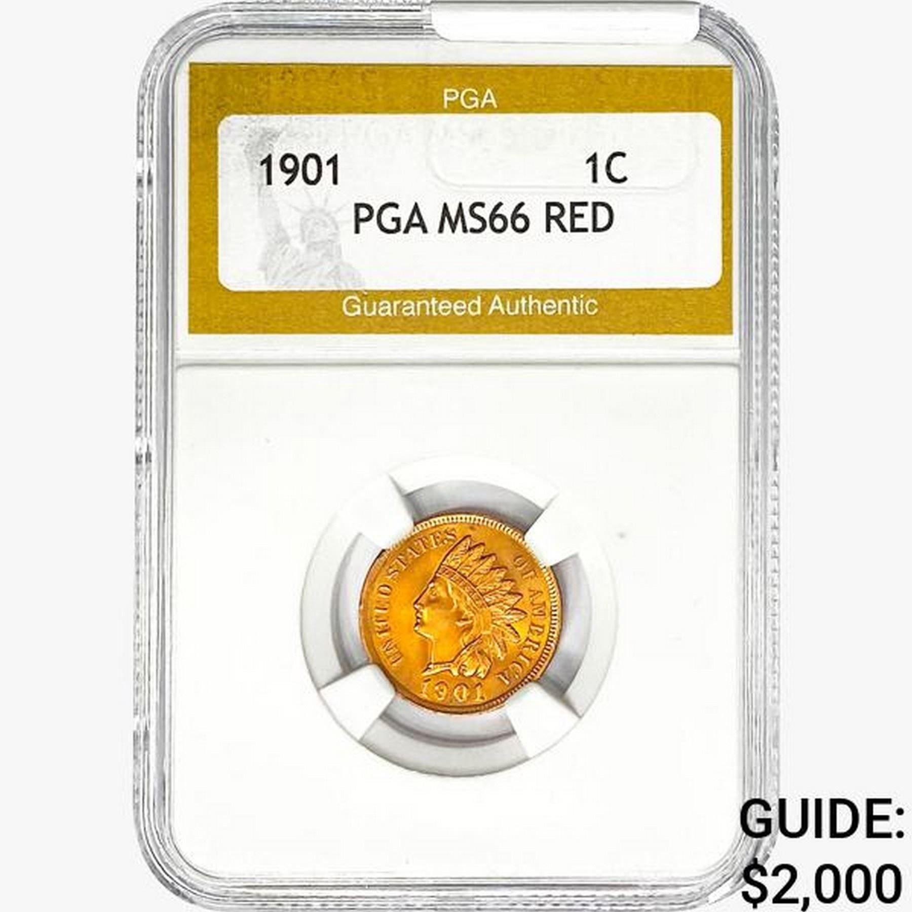 1901 Indian Head Cent PGA MS66 RED