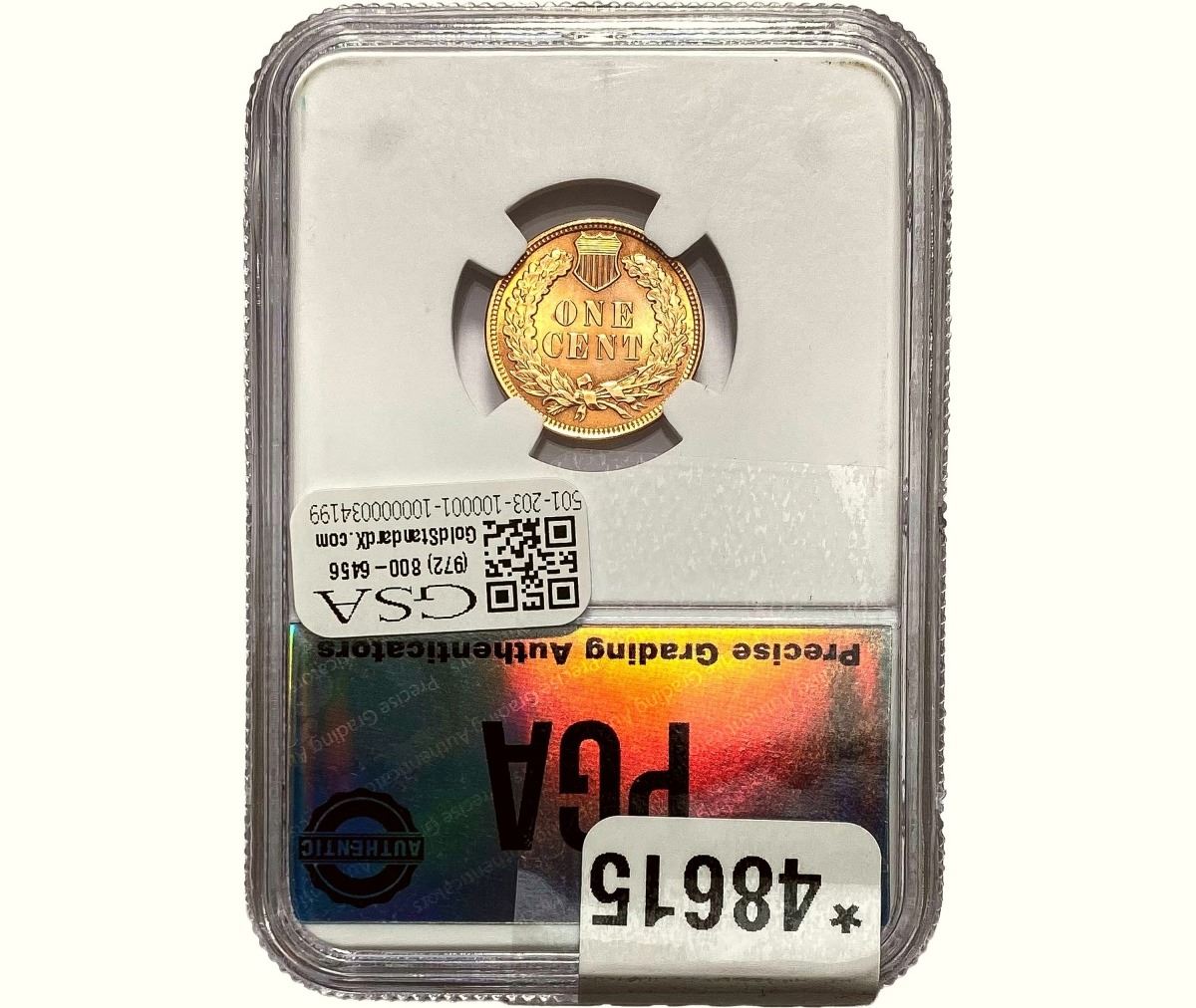 COINS AND CURRENCY LISTED IN GSA’S CATALOG AS GRADED AND ENCAPSULATED BY PCGS, NGC, ANACS, ICG, PCGS CURRENCY, PMG, PCGS BANKNOTE GRADING, CMC OR ANY OTHER THIRD-PARTY GRADING SERVICE ARE LIKEWISE SOLD “AS-IS” EXCEPT AS EXPRESSLY SET FORTH HEREIN. ALL THIRD-PARTY GRADING SERVICE GUARANTEES, INCLUDING AUTHENTICITY, ARE THE SOLE RESPONSIBILITY OF THE THIRD-PARTY GRADING SERVICE AND NOT WARRANTIES OR GUARANTEES OF GSA. BIDDERS SHOULD CONTACT THESE THIRD-PARTY GRADING SERVICES DIRECTLY WITH RESPECT TO ANY CLAIMS OR QUESTIONS THEY MAY HAVE CONCERNING THEIR GUARANTEES AND WARRANTIES. BIDDERS ACKNOWLEDGE AND AGREE THAT AUCTIONEER IS NOT BOUND BY OR LIABLE FOR ANY OPINION OR CERTIFICATION BY ANY THIRD-PARTY GRADING SERVICE. REMOVAL OF A PRODUCT FROM ITS PROTECTIVE CASING OR HOLDER OR ALTERATION OF ANY COIN HOLDER WAIVES ALL RIGHTS CONCERNING THE PRODUCT CONTAINED THEREIN.
