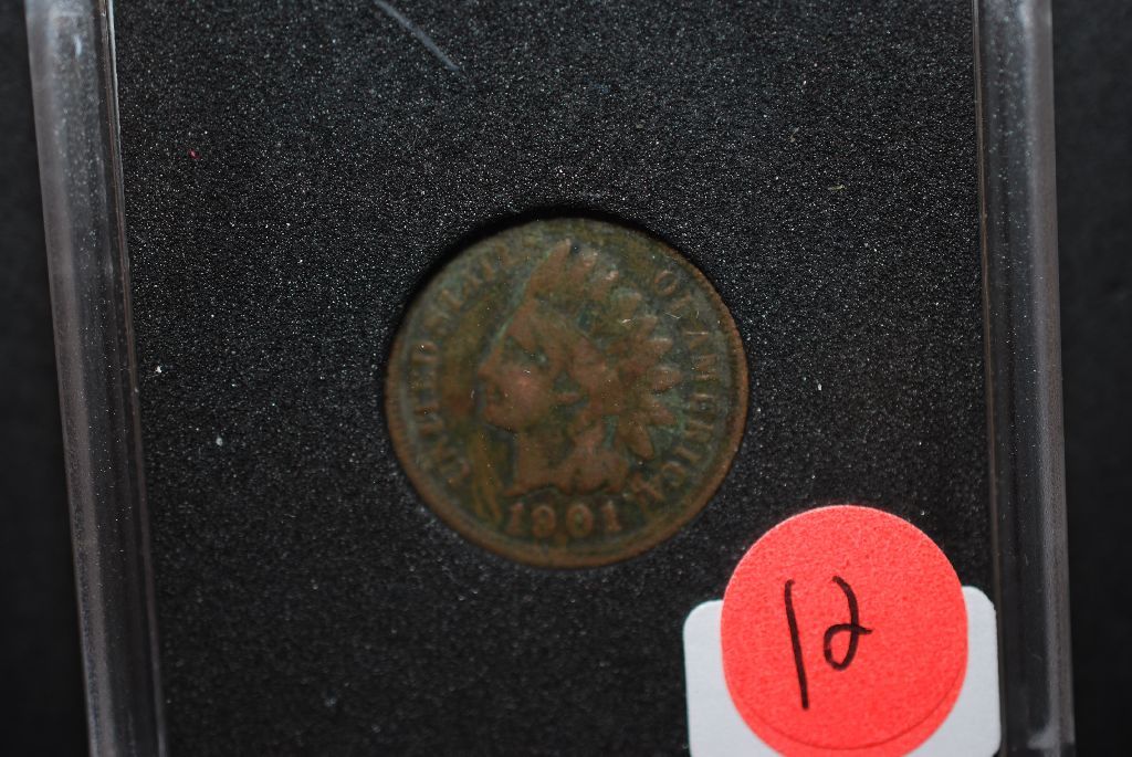 1901 Indian Head One Cent In Display Case; EST. $2-5