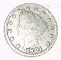 1901 LIBERTY HEAD "V" NICKEL RED BOOK VALUE IS $5.00+ *NICE EARLY FINE GRADE*!! NICKEL CAME OUT OF SAFE BOX!! ***Coin, Currency & All Items Listed in this auction - Grades, Conditions and Values are not Safe Deposit Coins LLC Responsibilty. Grades, Condition and Values are determined by Consigner(s) & Buyers