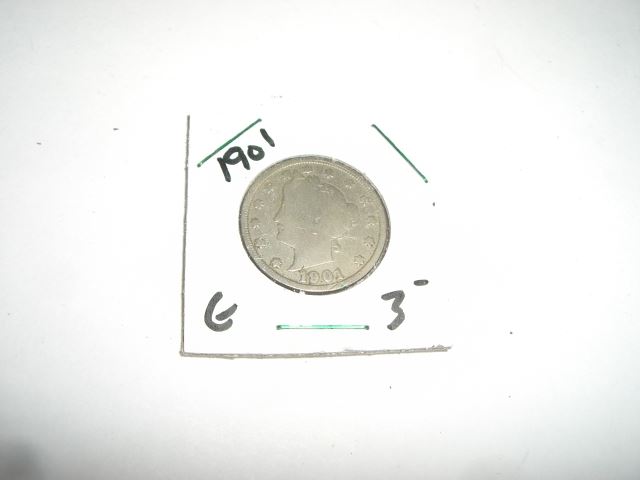 1901 Liberty "V" Nickel RFD Book Value $3+ *Nice Early GOOD Grade Nickel* ***Coin, Currency & All Items Listed in this auction - Grades, Conditions and Values are not Safe Deposit Coins LLC Responsibilty. Grades, Condition and Values are determined by Consigner(s) & Buyers