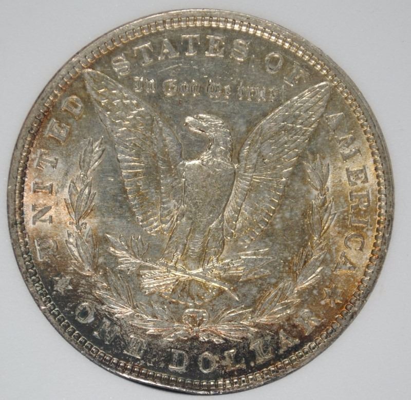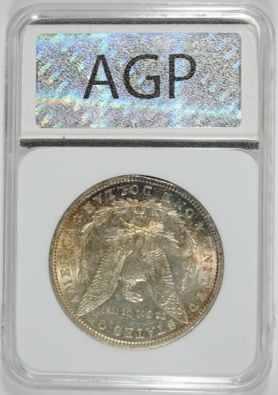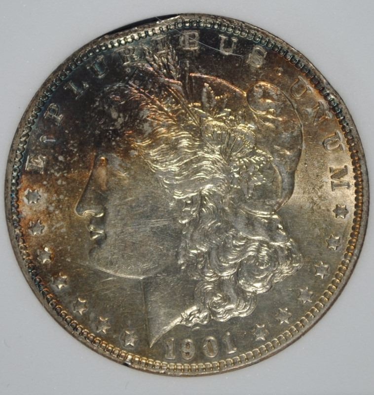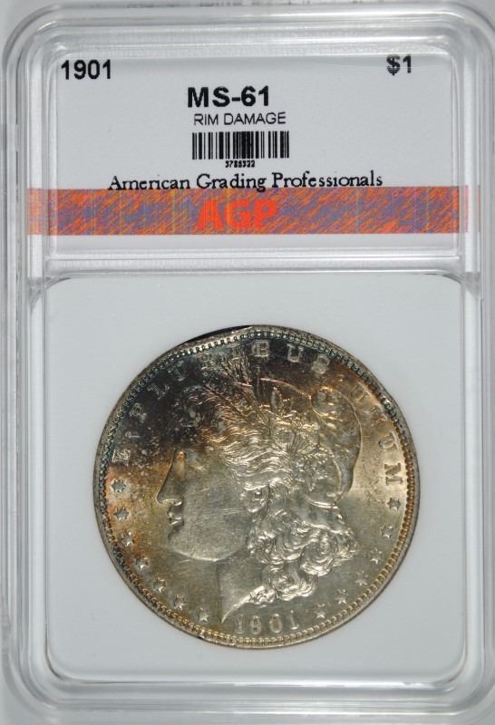 1901 MORGAN SILVER DOLLAR, AGP CHOICE UNC ( RIM DAMAGE @ 11:00 ) WITH COLOR
