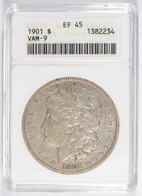 1901 MORGAN SILVER DOLLAR, ANACS EF/AU-45 NICE!