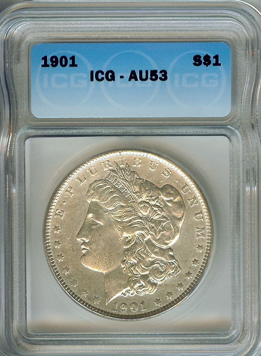 1901 MORGAN SILVER DOLLAR ICG AU53